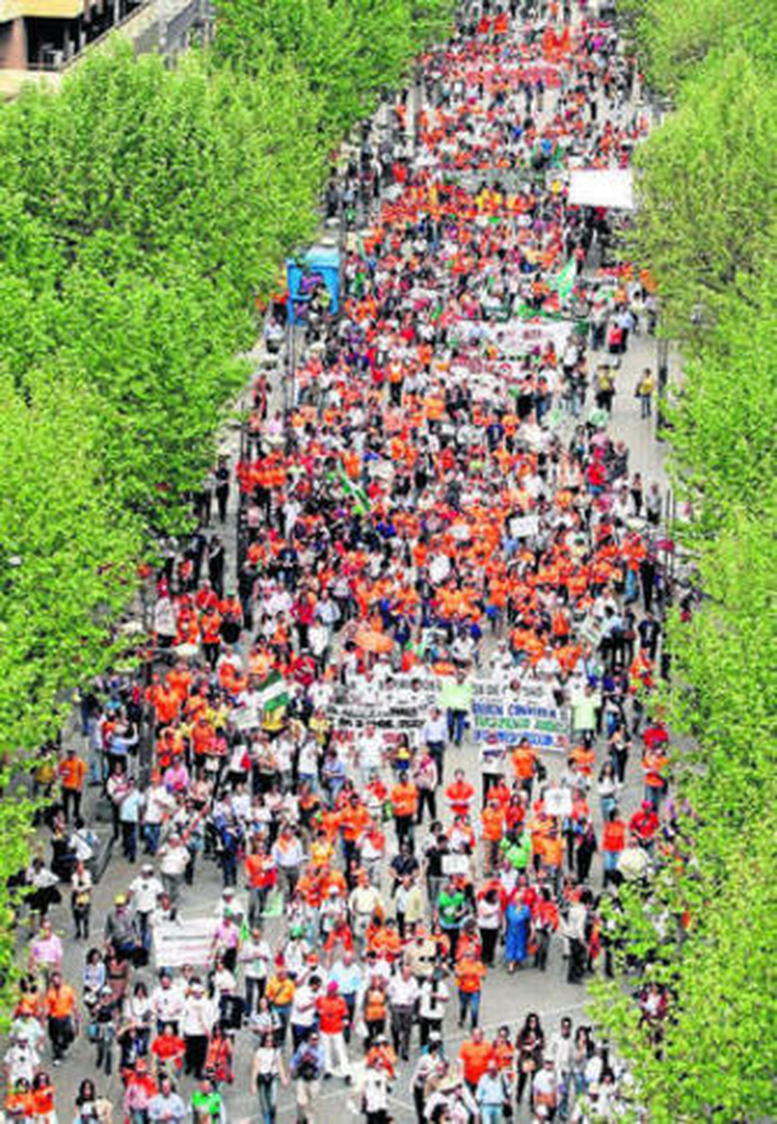 Alrededor de 7.000 funcionarios según la Policía Local -más de 10.000 para la organización- participaron ayer en la manifestación convocada por los trabajadores de la Junta para reclamar al Gobierno de José Antonio Griñán que derogue el decreto ley sobre la reordenación del sector público. A la marcha se sumaron trabajadores de todas las provincias andaluzas y supone un punto y seguido a las decenas de actos que los funcionarios han protagonizado en los últimos meses cada vez que algún integrante del Gobierno regional ha visitado Córdoba.