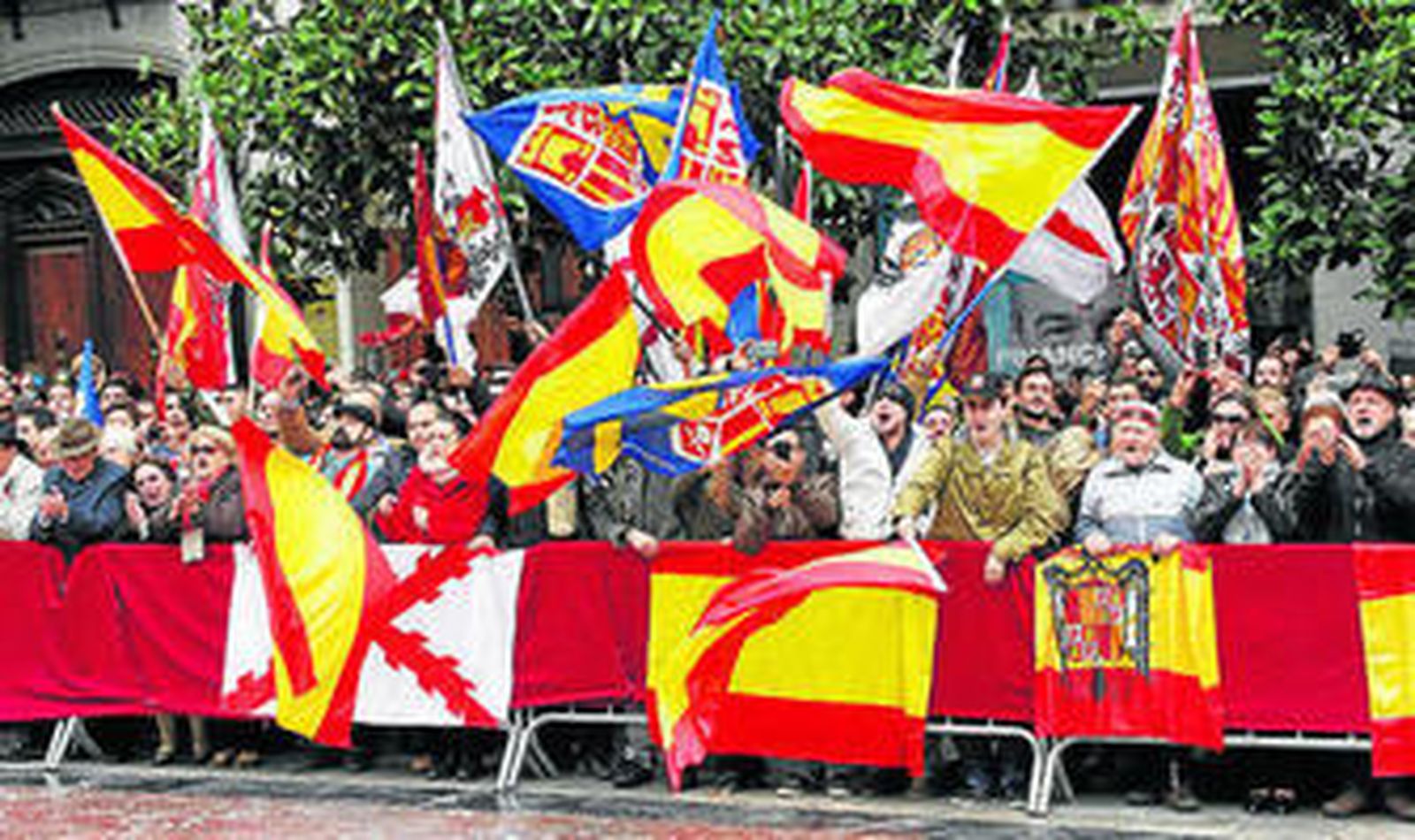 La fiesta de la conmemoración del aniversario de la Toma de Granada no necesitó lluvia para empañarse pues es una tradición que ya la saben enturbiar quienes de ella hacen apología desde los extremos de sus respectivas ideologías. Con sus banderas y cánticos anacrónicos respecto a la esencia de la festividad volvieron a rivalizar dejando en un segundo plano el ceremonial con el que se celebra cada año la entrada de los Reyes Católicos en Granada el 2 de enero de 1942 para recibir las llaves de la ciudad de la mano de Boabdil.