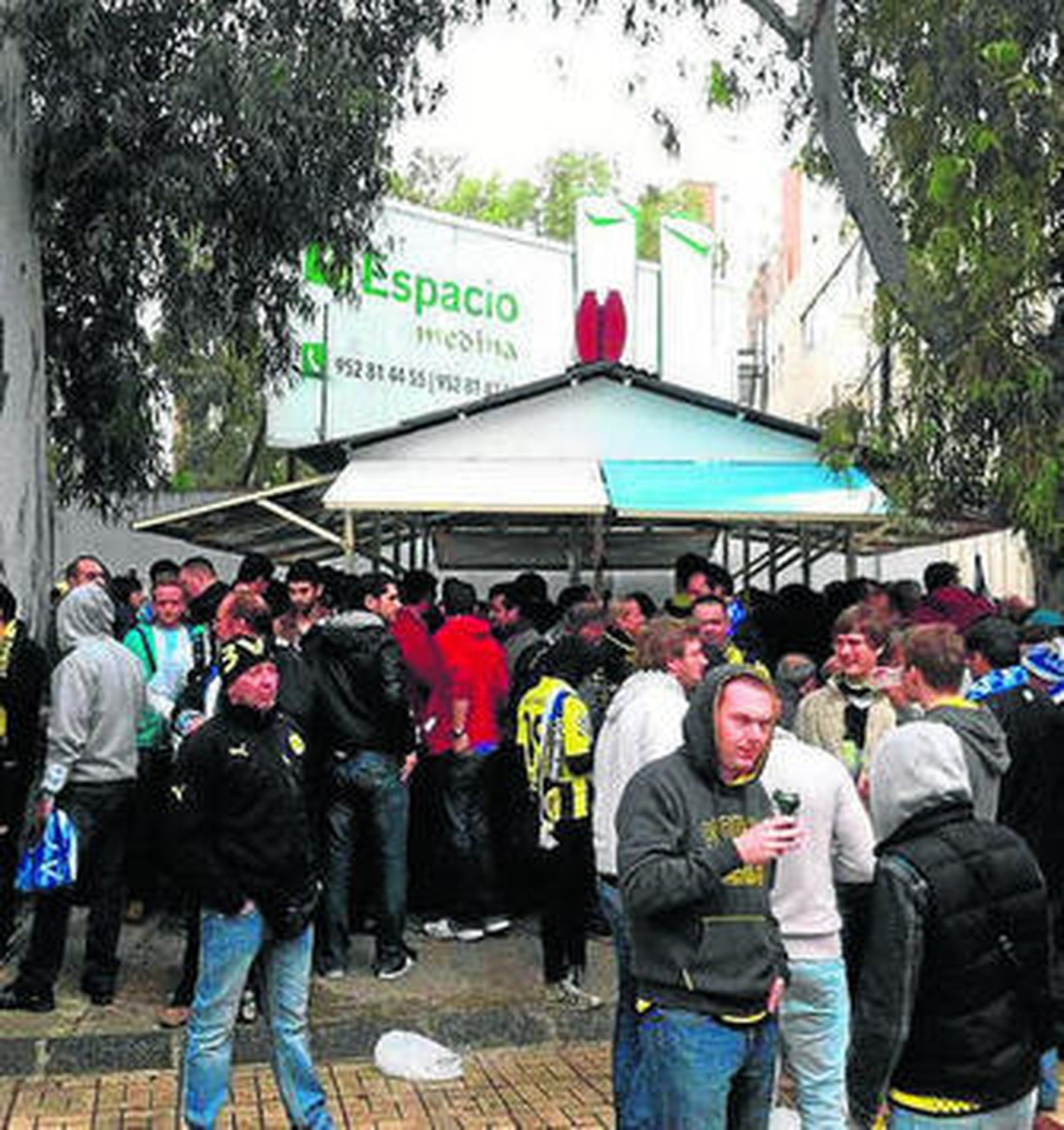 En los aledaños de La Rosaleda se compartía cerveza y cubatas, no obstante. Y desperdigados por La Rosaleda muchos núcleos con el color amarillo chillón del equipo alemán, síntoma de que la reventa había funcionado a discreción. Los aficionados del Dortmund venían alertados por problemas en Madrid y Sevilla, en anteriores visitas a España. Colegas alemanes relataban que los aficionados destacaban la cordialidad de la policía malagueña y de los ciudadanos. Igual los cuerpos de seguridad vieron el cielo abierto tras la mala experiencia con los ultras del Anderlecht y, en menor medida, del Zenit.