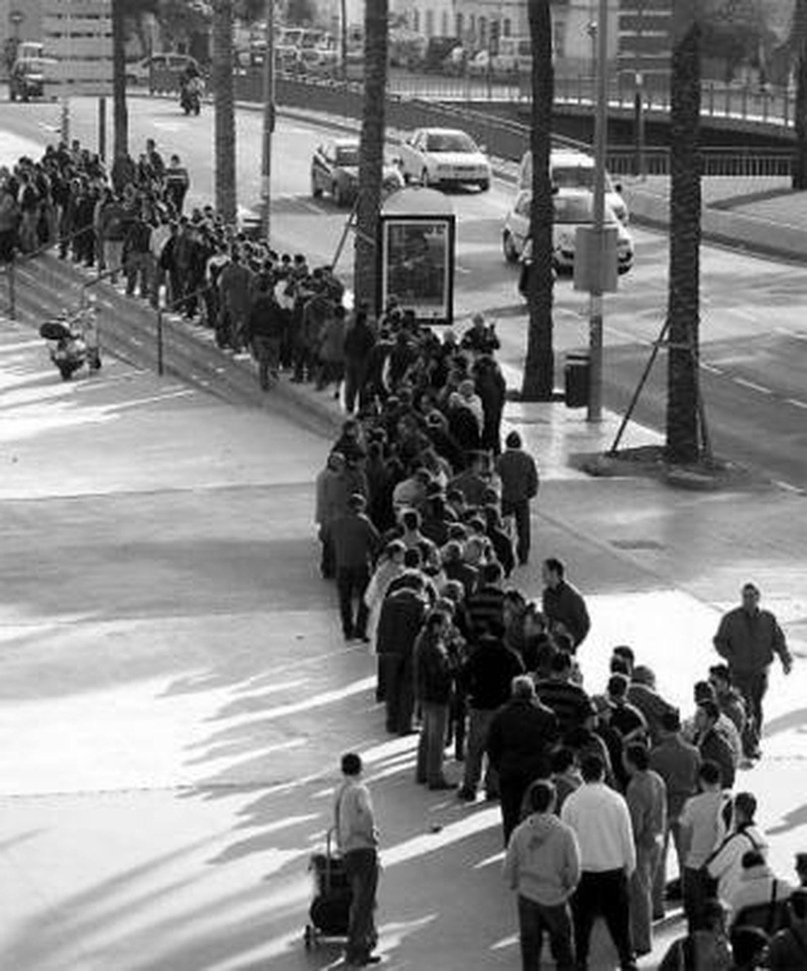 "Llevamos aquí desde las seis de la mañana y ya tenemos las quince entradas", exclamaba ayer por la mañana una pareja que se hizo con las primeras localidades del España-Francia a la venta para los abonados del Málaga. Fue el arranque de una jornada en la que se vendieron algo más de la mitad de las 8.000 entradas que la Federación dejó al club para los socios. La afluencia a las taquillas, que fue de más a menos a lo largo del día, dejó por la mañana escenas de colas que ocupaban el largo de la fachada principal del estadio de Martiricos.