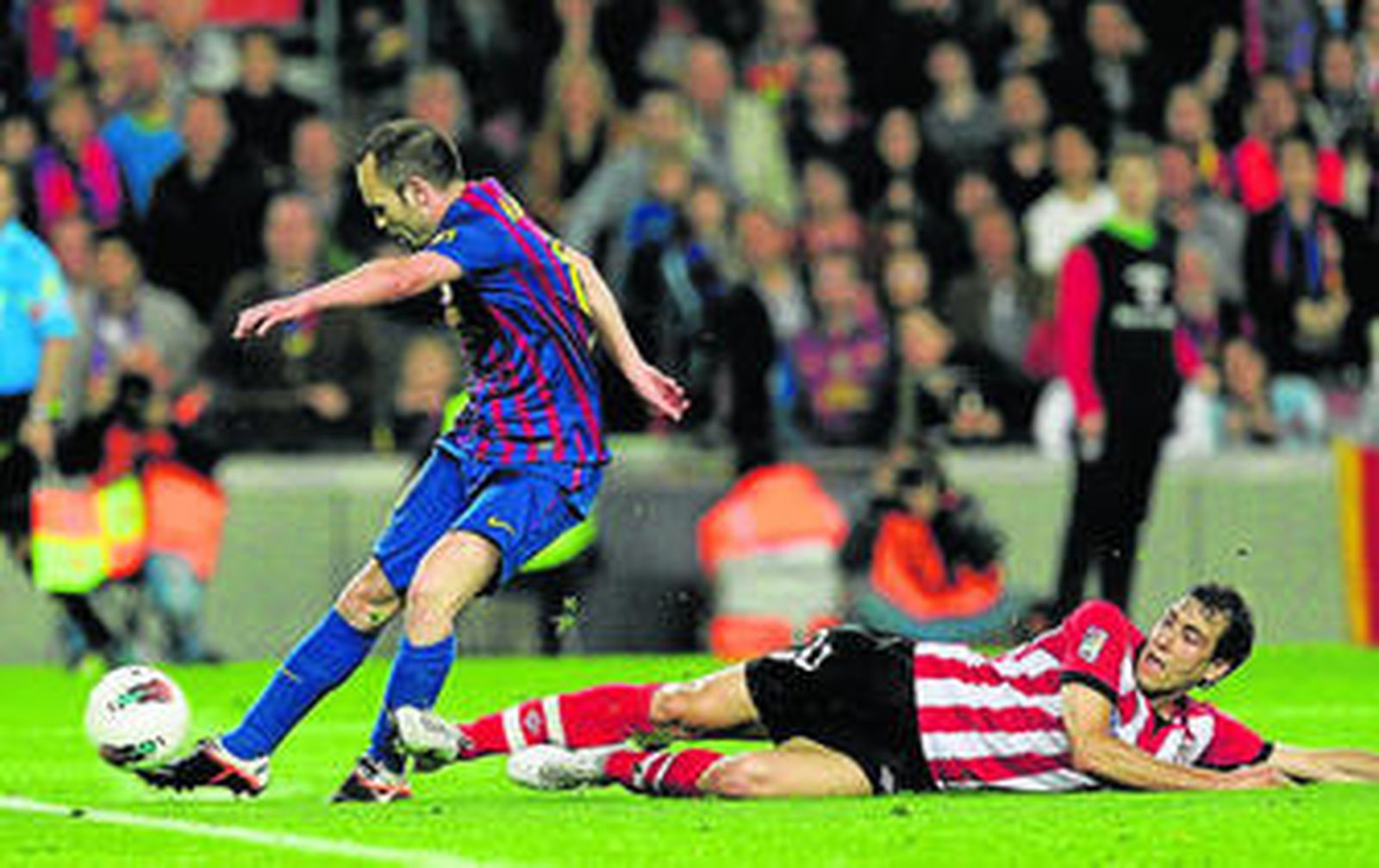 El vasco, un equipo que basa su fútbol en su enorme despliegue físico, tuvo un día menos para recuperarse y fue el que más acusó la resaca europea. Sólo mordió arriba en los primeros minutos, cuando Toquero e Ibai salieron como locos a presionar la salida de balón de los centrales azulgranas. Luego, dándose cuenta de que su esfuerzo era estéril, el conjunto bilbaíno retrasó sus líneas y se dedicó a contrarrestar las acometidas locales, con Javi Martínez inmenso como sombra de Messi, buenas ayudas defensivas y voluntad para salir con el balón jugado a la menor ocasión.
