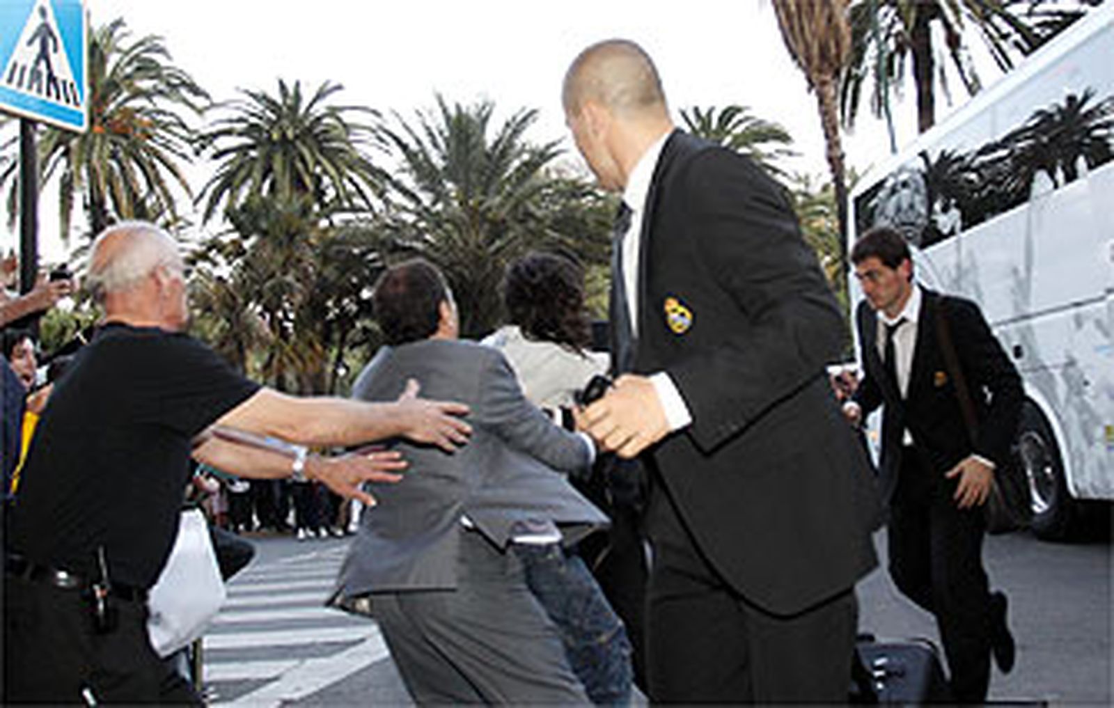 Sólo las grandes pasiones son capaces de producir sentimientos contrarios en cuestión de segundos y el fútbol parece ser una de esas pasiones. Minutos antes de la llegada del Real Madrid al céntrico hotel donde se hospedan en Málaga, los centenares de aficionados que se agolpaban a las puertas, sonreían, lanzaban gritos de ánimo (se volvió a escuchar el ¡Raúl Selección!) y esperaban esperanzados la llegada de sus ídolos, que no se hicieron esperar. Con una puntualidad casi inglesa, el autobús que trasladaba al equipo desde el aeropuerto llegaba al hotel y el gentío rozaba la locura a fuerza de gritos. Los jugadores empezaron a salir, rápidamente, sin detenerse, Raúl, el capitán, el primero. De repente, una aficionada saltaba la valla de seguridad para avalanzarse contra Casillas, que fue protegido por la Policía. Sólo Sergio Ramos y el central Pepe se pararon para regalar algún autógrafo. En menos de dos minutos, toda la plantilla y el cuerpo técnico se encontraban a salvo, dentro del hotel. Mientras en la calle, lo que antes eran sonrisas se transformaron en lágrimas, porque a pesar de ver a sus ídolos de cerca, éstos no habían obsequiado a la multitud con el codiciado autógrafo. Parece que el fanatismo es lo más cercano a la ciclotimia.