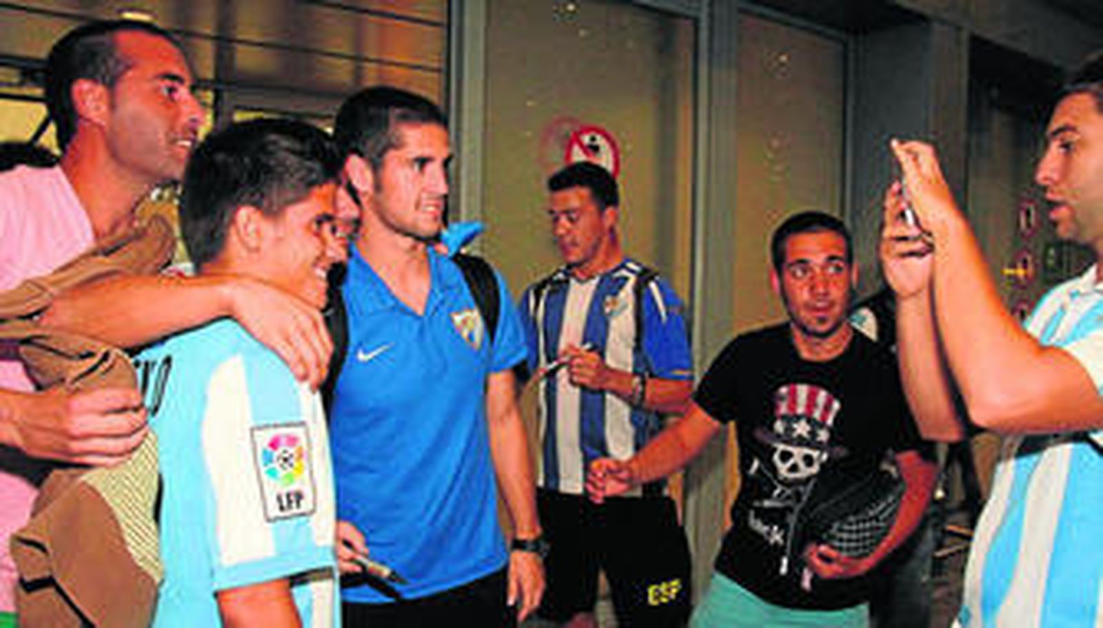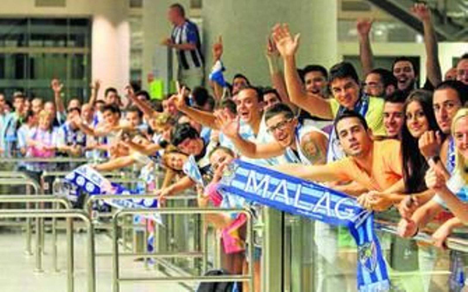 Con varios minutos de retraso, el vuelo del Málaga aterrizó a las 5:10 y el número de expectantes aficionados se triplicó hasta transformar la terminal de llegadas del Aeropuerto de Málaga en una pequeña Rosaleda. Los jugadores aguardaban al otro lado de las puertas para salir juntos hasta que Duda y Demichelis decidieron ir abriendo paso. Al ver todos los cánticos y el calor de la afición, muchos jugadores no pudieron evitar esbozar una sonrisa.