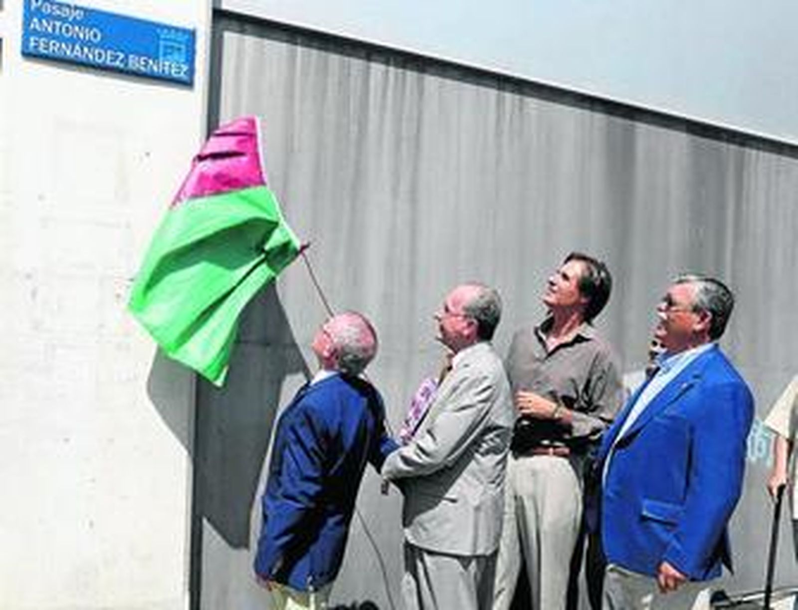El ex entrenador y jugador del Málaga, Antonio Fernández Benítez, recibió ayer por parte del Ayuntamiento y del club blanquiazul el reconocimiento a toda una carrera dedicada a la entidad de Martiricos. El ahora directivo del club, puso su nombre a un pasaje, el del lateral de preferencia del estadio de La Rosaleda. Además, recibió, por parte del club, el honor de unirse a dos históricos como Viberti y Migueli y tener una puerta dedicada a su figura. La entrada en cuestión es la 0, que da acceso a uno de los palcos del campo.