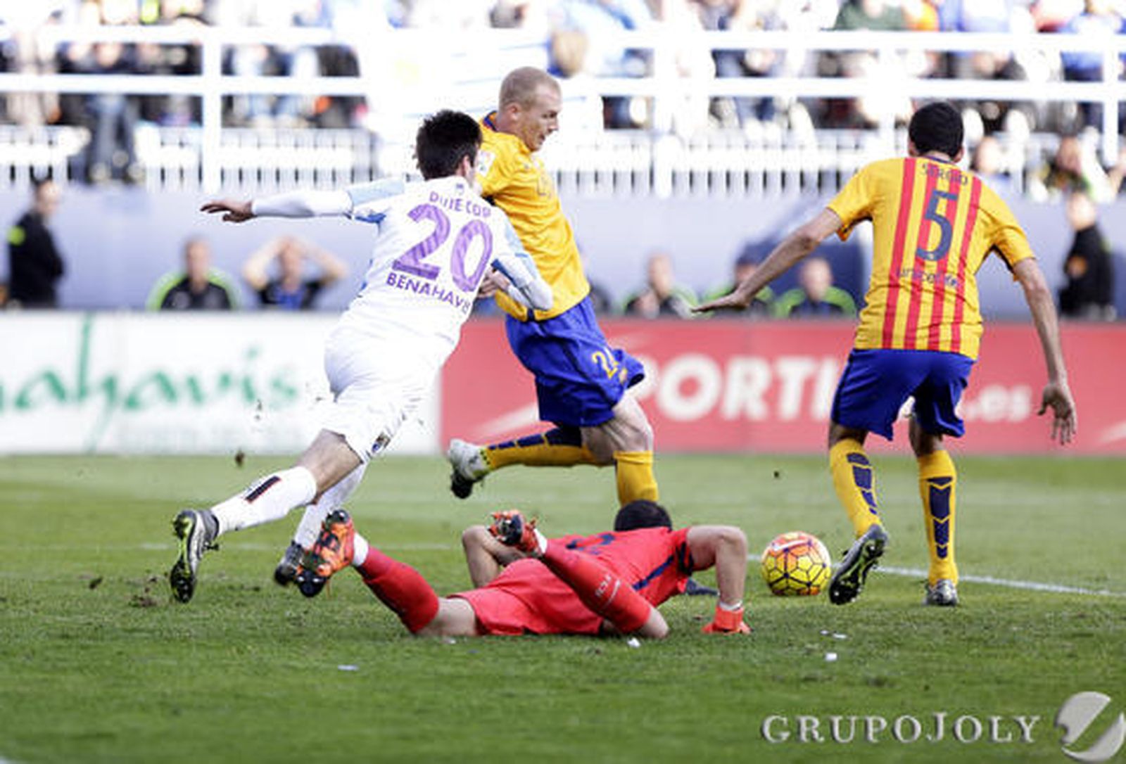 Cabe celebrar los múltiples méritos de ayer. Más aún cuando a los dos minutos el ahora líder de la Liga se puso por delante. Toda una semana planteando un partido de aguante, firmeza atrás y concentración y el trabajo se fue al garete de inmediato. De hecho, sacó el Barça de centro y durante esos dos minutos ningún futbolista del Málaga tocó el esférico. Hacerlo por primera vez para sacar tras el 0-1 habría tumbado a cualquiera y hubiera roto cualquier planteamiento táctico de la semana. Pero la bravura local y la imagen penosa de los catalanes hizo que hubiera partido. Y qué partido.