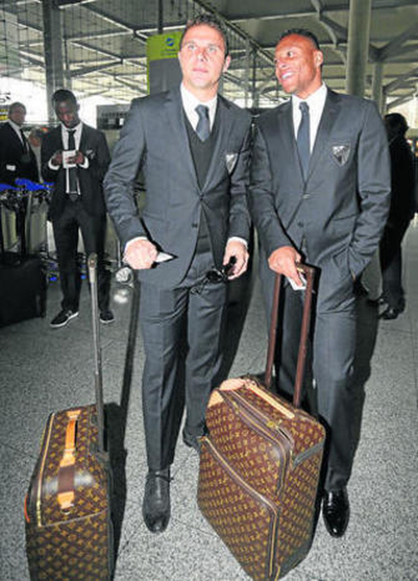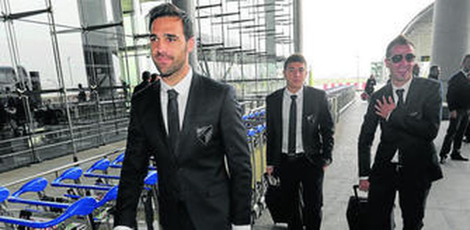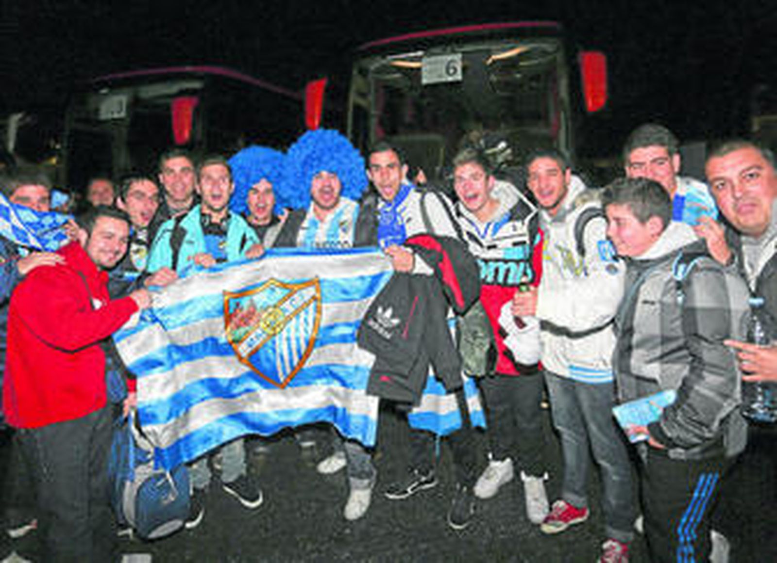 Ellos partieron por la noche, pero la primera avanzadilla había partido nueve horas atrás, acompañando a los jugadores de la primera plantilla. Los malaguistas, vestidos con sus mejores galas, tuvieron una escolta de lujo. Además de los aficionados que volaron en el mismo avión, se fletó otro chárter exclusivamente para ellos.