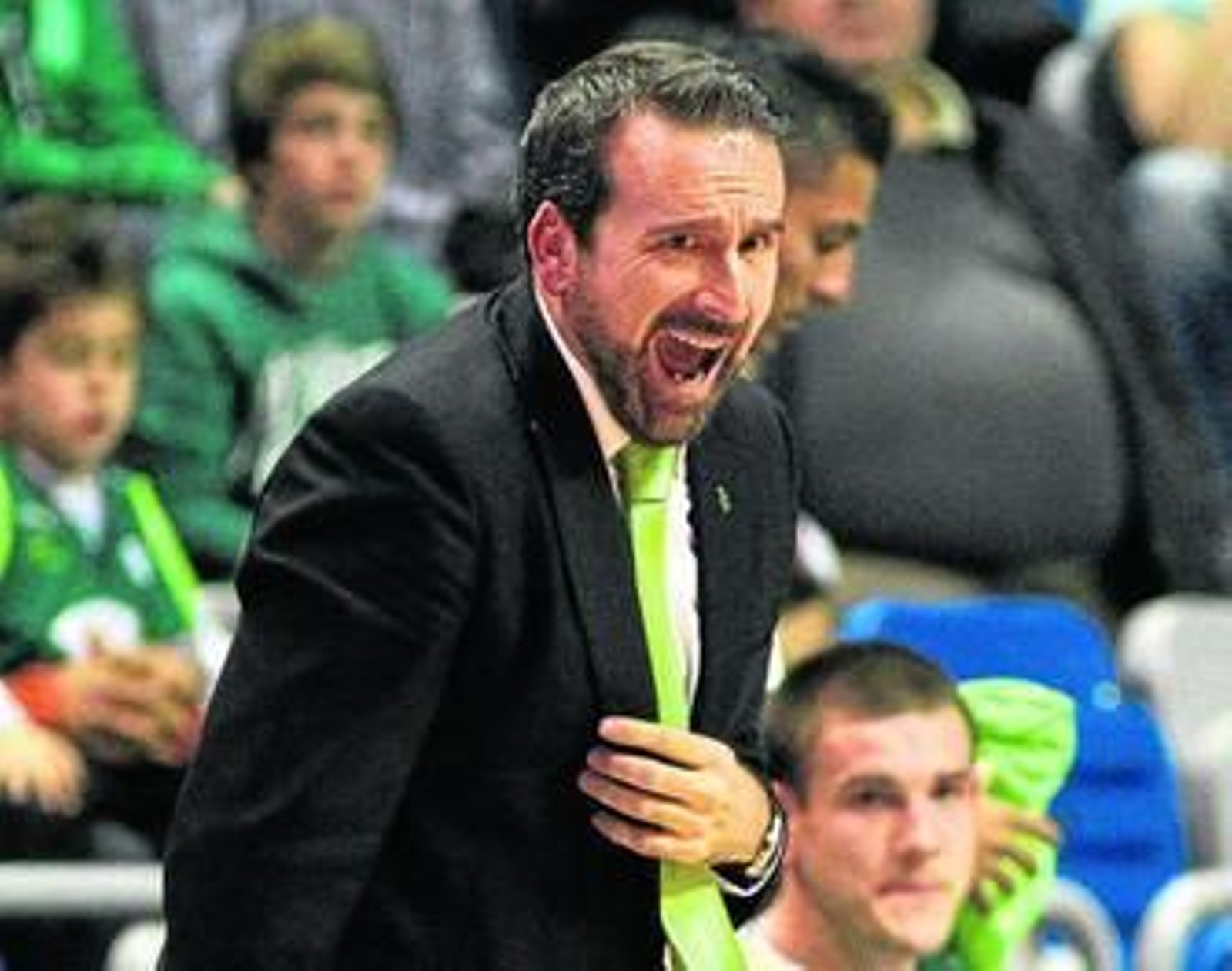 Joan Plaza da instrucciones en un partido del Unicaja.