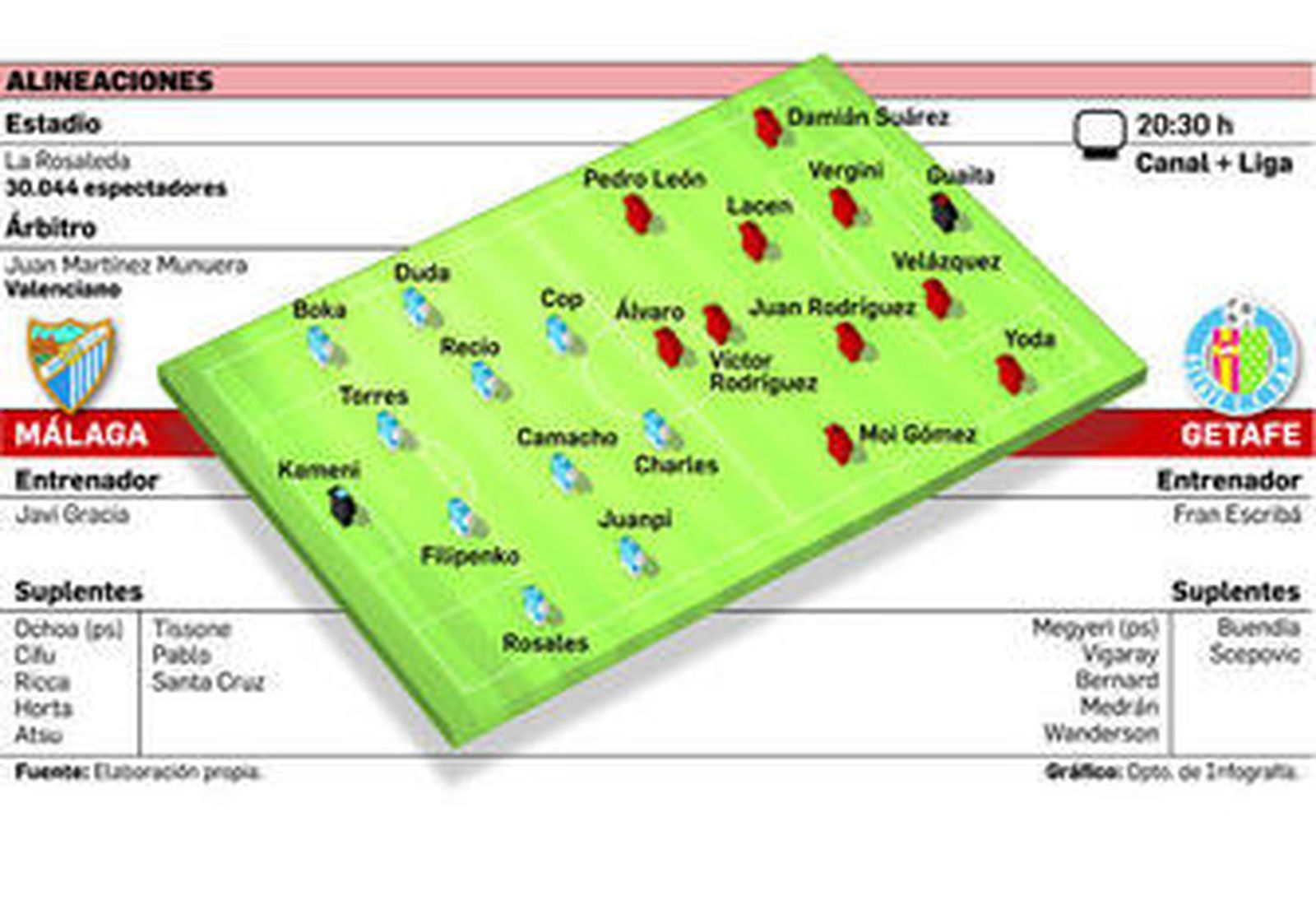 El Málaga tiene el reto de prolongar ante un rival directo como el Getafe su buen momento en una semana en la que apenas se habló de fútbol Duda y Atsu aspiran a hacer de Chory Cifu y Ricca, en la lista