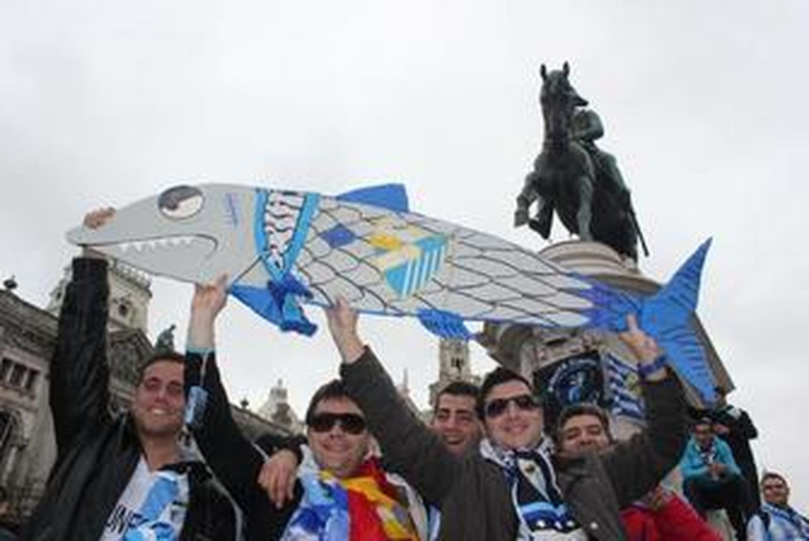 En caravana, en moto, en coche, en avión, pero todos con dos puntos de confluencia: Do Dragao y la Plaza de la Libertad. Aunque algunos apuraron la mañana en su habitación de hotel para descansar por haber ido a conocer la ruta nocturna de Oporto, raro fue no toparse por los barrios centrales de la ciudad con malaguistas haciendo gala de ello. A las 12:00 estaba convocada otra quedada más en la plaza céntrica de la ciudad de turno, así ocurrió en sitios señalados de los anteriores viajes. Esta vez no iba a ser menos. Aunque ya desde primera hora de la mañana el hormigueo blanquiazul se dejó sentir. El retrato estándar fue el de gente abrigada con la bufanda del Málaga al cuello. Y, aunque no se viera, con la elástica del equipo debajo del jersey. Pero también se hicieron notar un grupo de aficionados vestidos de jeques blanquiazules, un torero y gente con pelucas blanquiazules. Entre ellos camuflados y disfrutando, gente como Fernando Puche, Federico Beltrán o Daniel Pastor. Allí, durante una hora y media porque a medida que llegaban autobuses se iban incorporando a la plaza, se entonaron los clásicos vítores de Martiricos. Se llegó a jugar al fútbol incluso. Más de mil personas desfilaron por allí para dejar claro que el malaguismo tiene otra sede más en Europa. Y deseando que no sea la última.