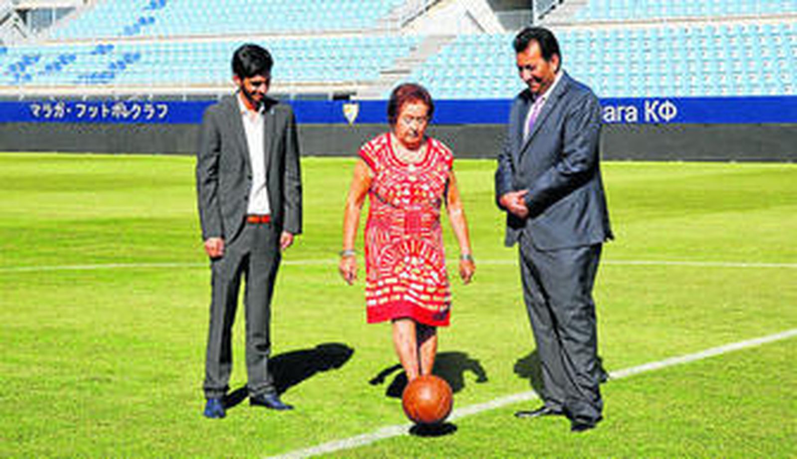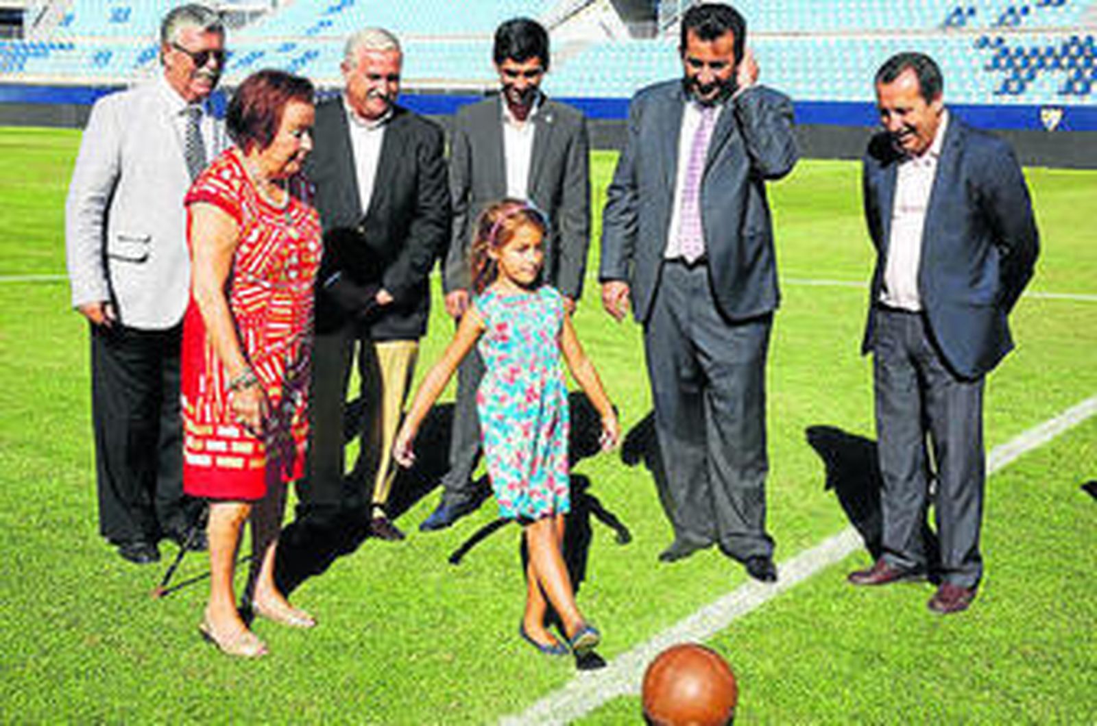 Lourdes Alonso fue protagonista en este homenaje que ha querido rendir el club a su estadio. Fue un evento en el que se inauguró una galería de 75 fotos que narran, de una particular manera, la historia del templo malaguista. Lourdes, hija del que era alcalde de Málaga ese día, Pedro Luis Alonso, fue la encargada de hacer el saque de honor aquel 14 de septiembre de 1941, cuando el CD Málaga se estrenaba en La Rosaleda ante el Sevilla FC. Ayer, 75 años después, volvió a pisar ese césped para revivir aquel acontecimiento. Lo hizo junto a su familia, en la que destacó su nieta, que también quiso patear el balón como lo hizo su abuela hace tantos años.