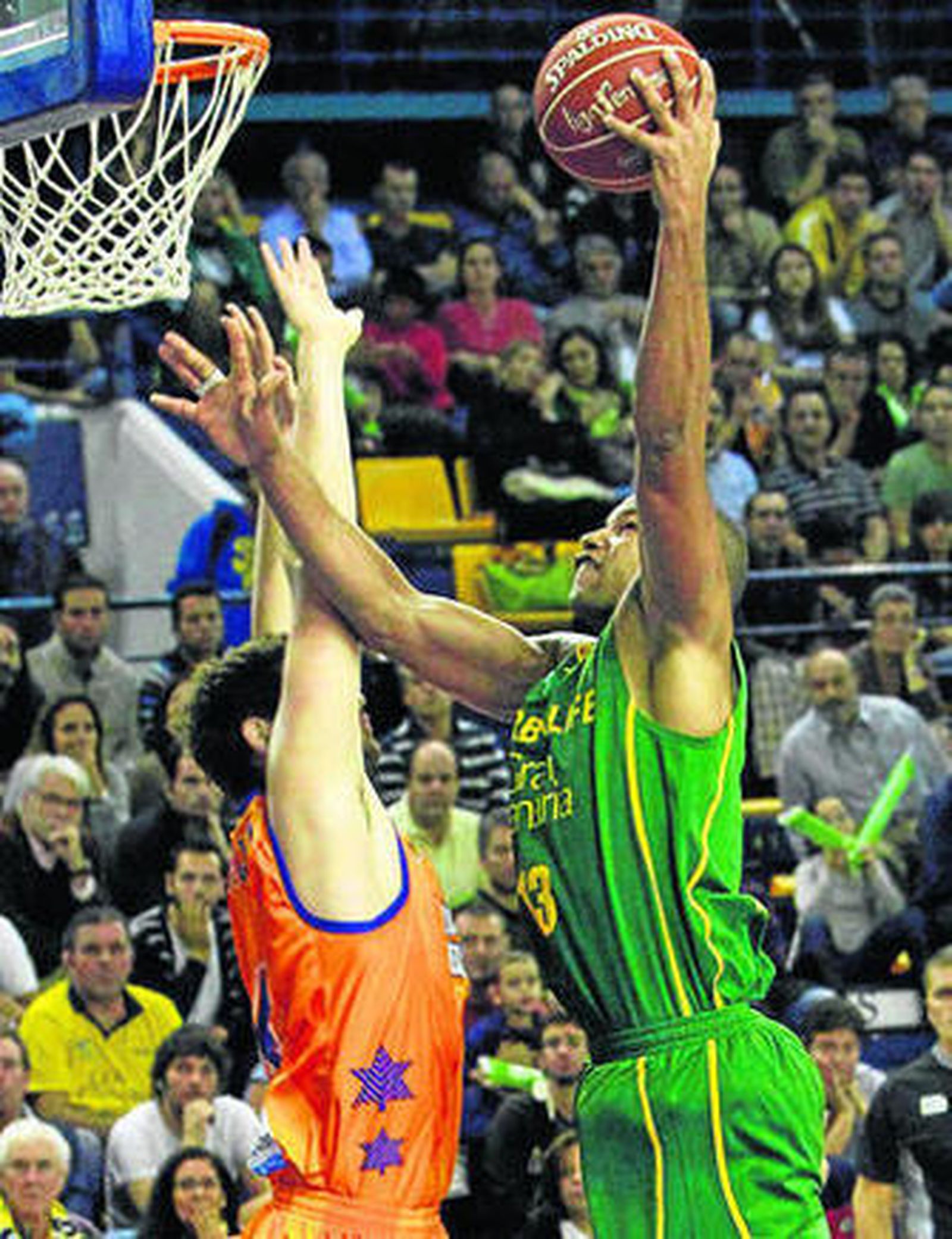 El Valencia Básket se consolida como segundo clasificado de la Liga tras romper la racha de cinco victorias de un Herbalife Gran Canaria que sufrió la solidez defensiva del equipo levantino pese a las ausencias por lesión de Markovic, Lishchuk y Faverani (65-79). Doellman, con 23 puntos, fue el principal verdugo de los isleños, que sólo encontraron en el balcánico Slokar una alternativa en la vanguardia, merced a sus 12 puntos y 5 rebotes.