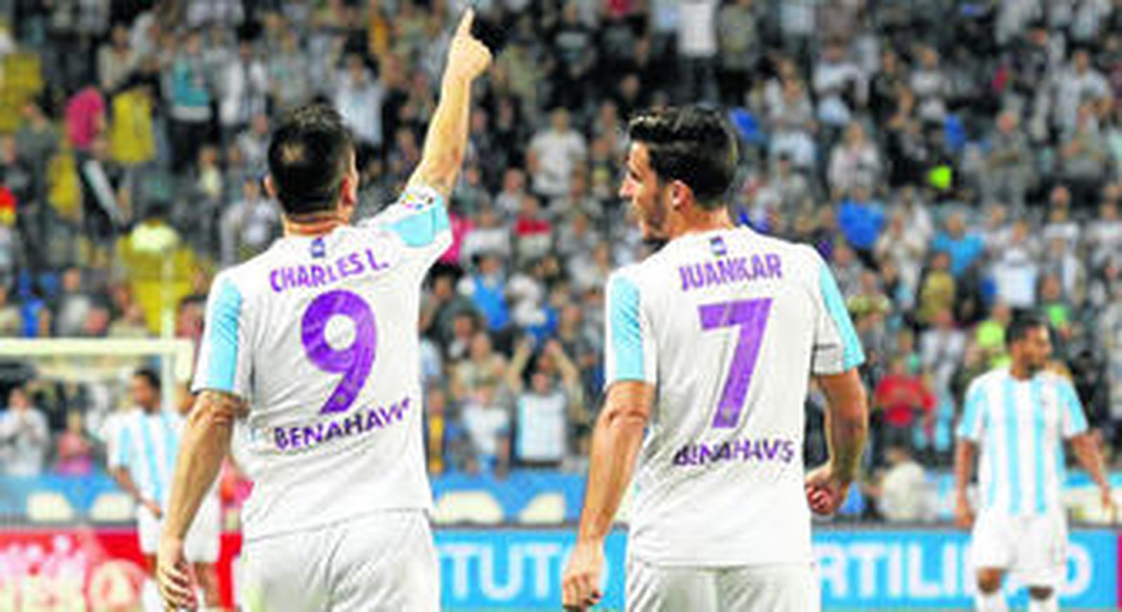 La plantilla del Málaga destaca la "liberación" que supone la victoria sobre la Real y la confianza que existe en el goleador Charles: "Le decíamos que después del primero vendrán muchos más"
