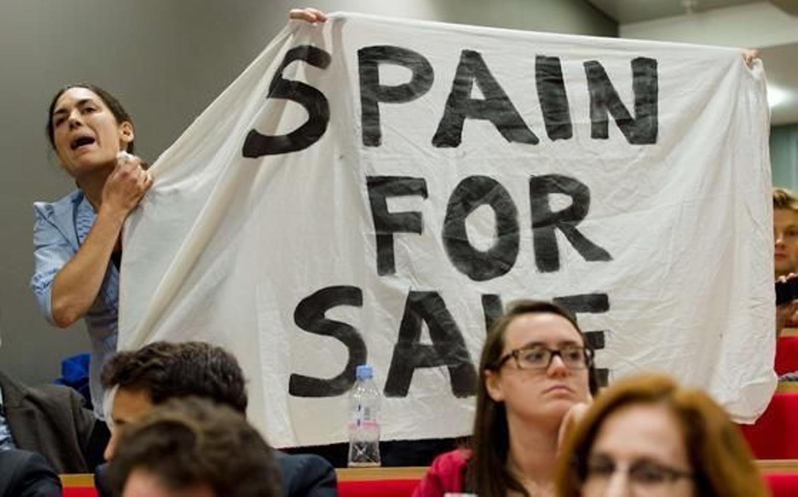 Ante un auditorio abarrotado, en el que algunos miembros del público pidieron que cesase esa protesta y aplaudieron a De Guindos, el ministro defendió la competitividad de la economía española y dijo que el Gobierno está tomando medidas "muy dolorosas" pero necesarias para retomar el crecimiento. "A veces los gobiernos necesitan tomar decisiones difíciles", apuntó De Guindos, al tiempo que se mostraba dispuesto a reunirse con los jóvenes españoles que expresaron su disgusto y clamaron "no nos representan" y "no hay democracia para la gente" en un momento dado de la conferencia.