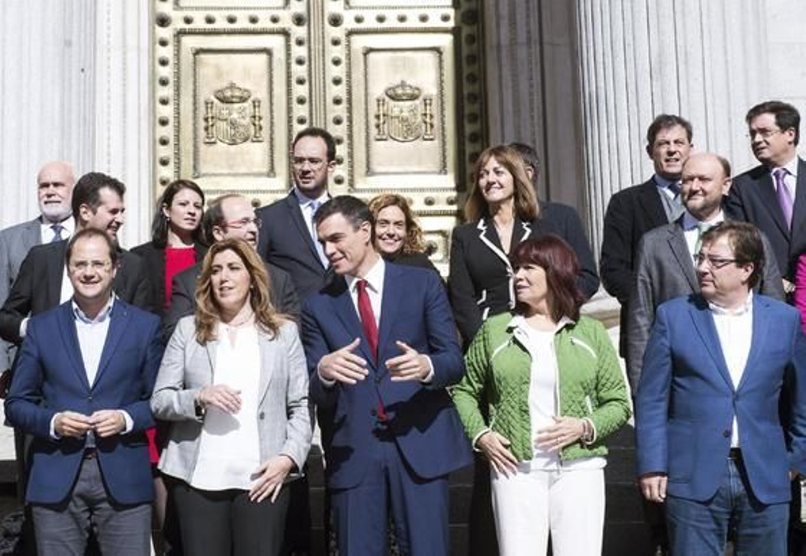La presidenta de Andalucía, Susana Díaz, ha pedido al jefe del Gobierno, Mariano Rajoy, que convoque de forma urgente a todos los partidos para consensuar una postura común ante el "disparate" y el "golpe de Estado" perpetrado por el bloque independentista de iniciar ya el camino de la secesión en Cataluña. Díaz ha transmitido este mensaje a Rajoy al término de la reunión de los barones del PSOE celebrada en Madrid antes del acto de presentación de la reforma constitucional a cargo del secretario general, Pedro Sánchez.