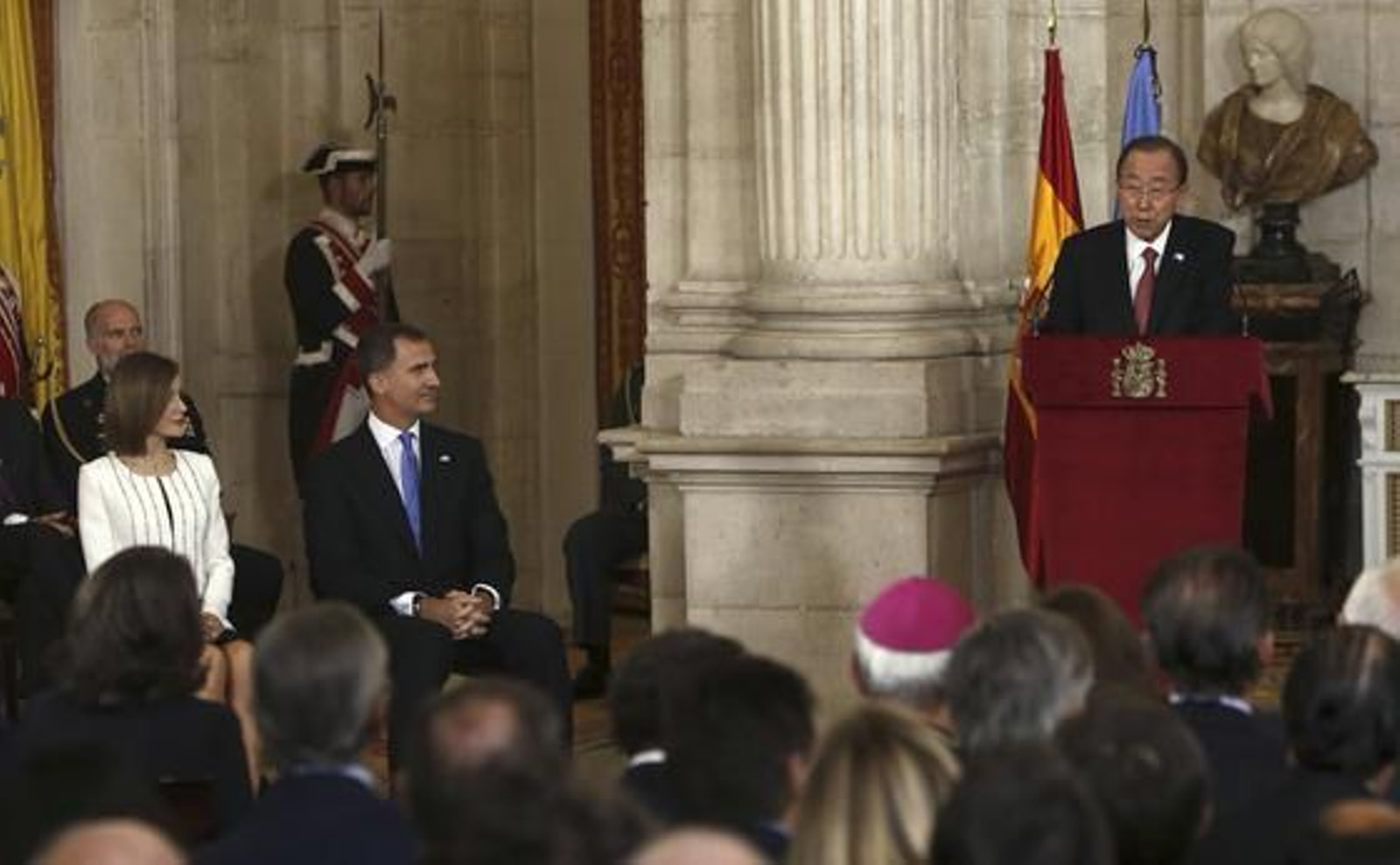 El secretario general de la ONU, Ban Ki-moon, apoya la pervivencia de una "España unida" en el acto conmemorativo del 60º aniversario de la entrada de España en la ONU que ha sido presidido por el Rey en el Palacio Real.