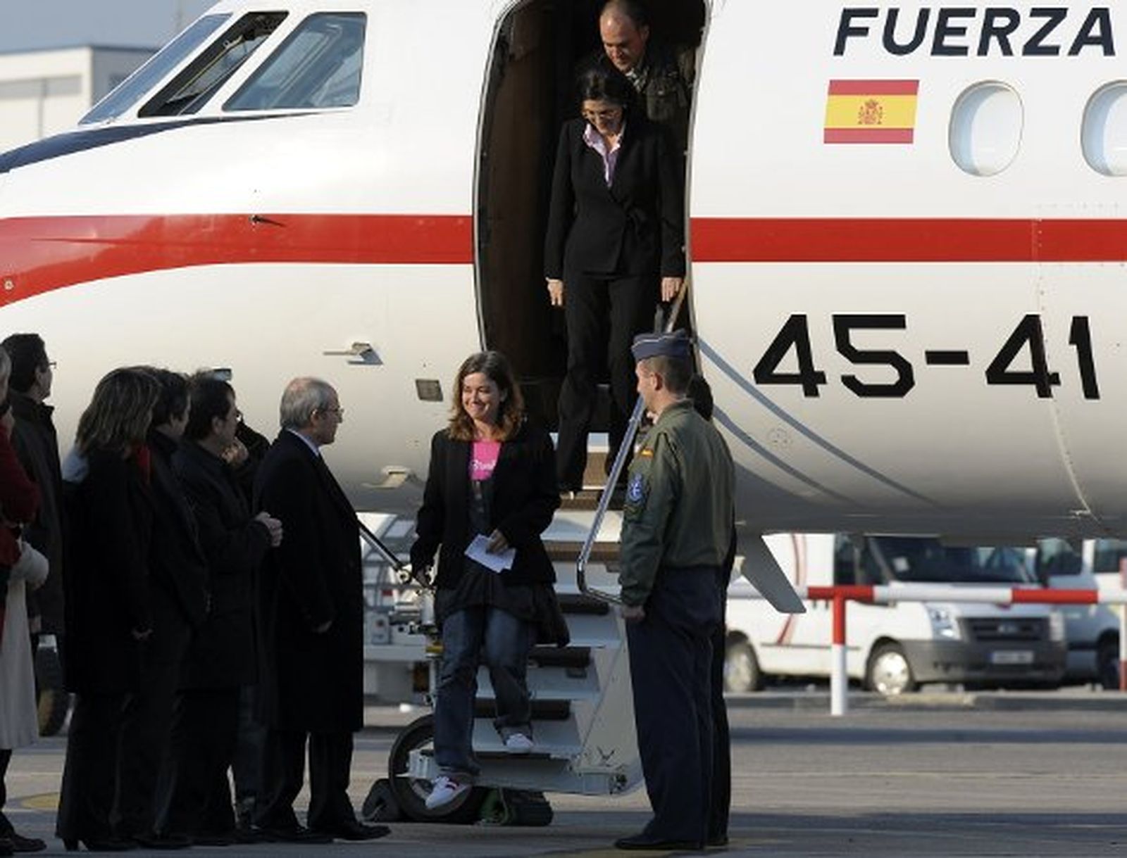 Alicia Gámez ha llegado al aeropuerto de Barcelona en un Falcon de las Fuerzas Armadas Españolas.