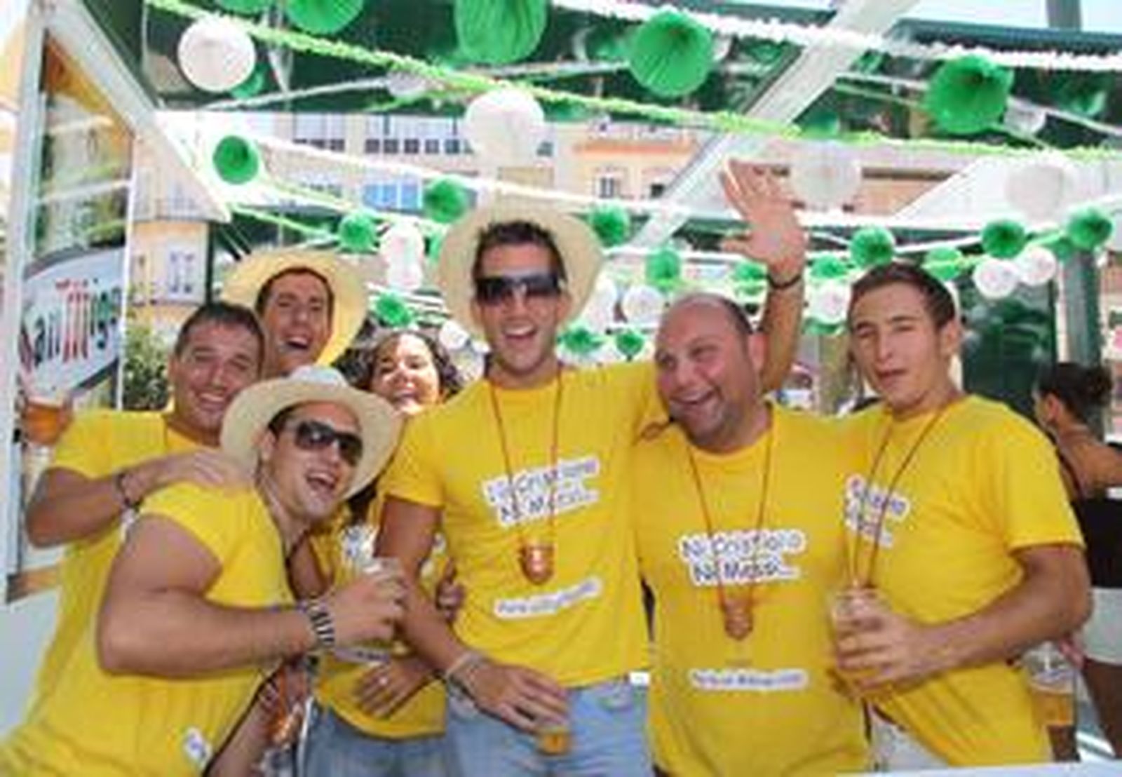 Cada vez es más habitual encontrar en la Feria grupos de personas con frases divertidas en su ropa, a menudo picantes, para reforzar la singularidad del colectivo