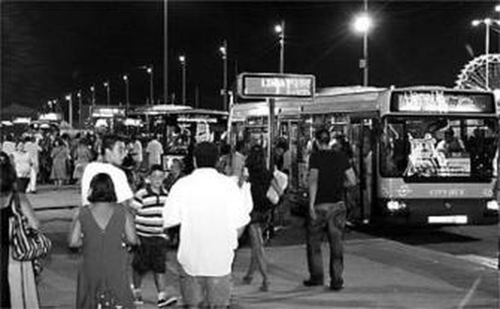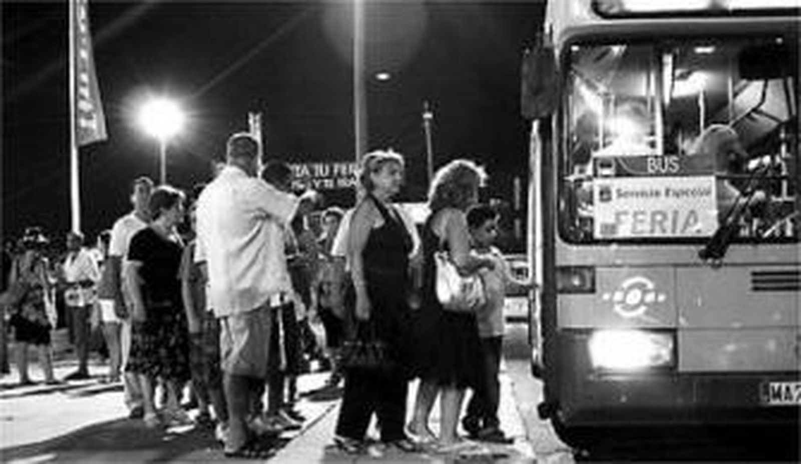 Los autobuses de línea de la EMT se han convertido en un crisol de celebraciones feriantes que actúan como un amplio escaparate del mundo que rodea estos días. Camino al real todo es espera y desesperación en las paradas. En ocasiones, la gran demanda de usuarios supera con creces la capacidad de los vehículos habilitados.