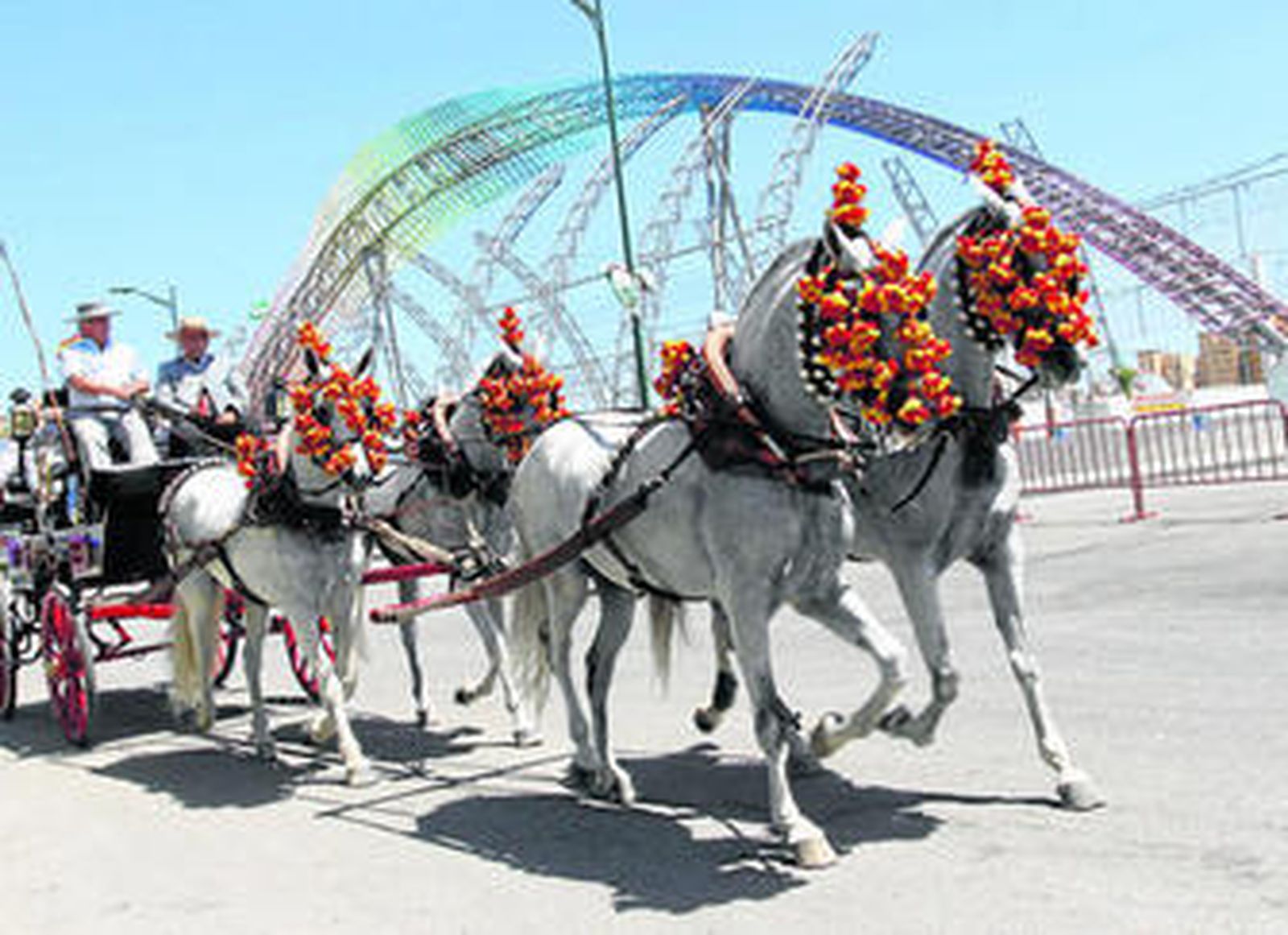 Se escuchan relinches y trotes lentos pero acompasados. Son los caballos y caballistas que en la tarde de ayer se convirtieron en los verdaderos protagonistas de las calles del Real. Una auténtica feria al trote en el que jinetes, amazonas y enganches desfilaron al más puro estilo tradicional. A pesar del calor, muchos no dudaron en engalanarse con sus trajes de corto y de volantes, ponerse el sombrero, y subirse a lomos de un caballo a recorrer el Cortijo de Torres. Una afición que, en la gran mayoría de los casos, comparten desde muy pequeños: "Llevo toda la vida viniendo con mi familia, desde pequeñito. Pero este año es la primera vez que nos hemos presentado, ella tenía muchas ganas y yo también, así que ha sido llegar y topar", comentó Alejandro Páez, ganador del segundo premio a la mejor grupa. Y es que muchos lucieron ayer sus mejores galas y morrelajes para participar en el XI Concurso de Indumentaria y Atalaje Ecuestre que tuvo lugar frente a la caseta municipal.