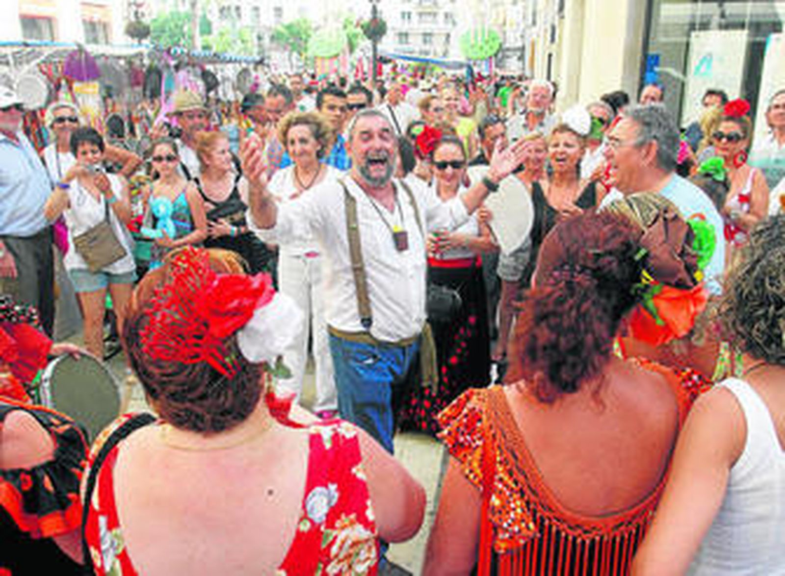El rock contrastaba con las castañuelas y las cañas de un grupo de amigos que se ponía su propia banda sonora sin tener muy en cuenta los sonidos que salían de los bafles de la plaza de la Constitución. La música enlatada decía que "la vida es más divertida bailando rumbas". Pues será eso. Y algunos estaban empeñados en hacer caso y bailaban con bastantes ganas, moviendo brazos y caderas. Otros tan sólo seguían el ritmo con la cabeza, pero ahí estaban, aguantando el tipo, acompañando a sus parejas o amigos en el compás que de la rumba pasó a las sevillanas.