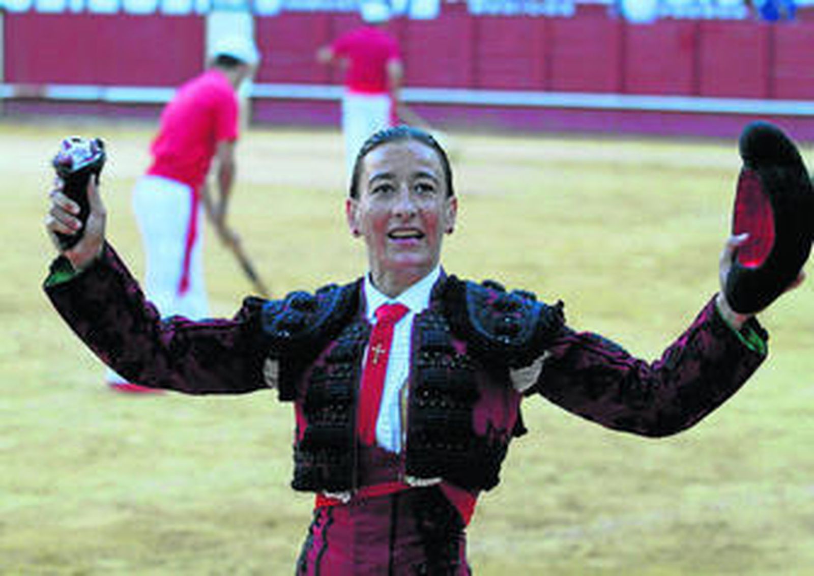 La malagueña Mari Paz Vega cortó una oreja a un gran toro de la ganadería La Reina que dio muy buen juego · Leandro también cortó un apéndice y David Galván pasó inédito ante un mal lote