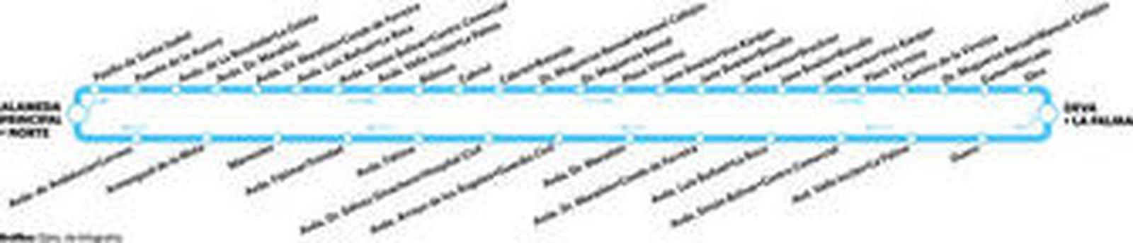 El mercado de la Palmilla, en la calle Ebro, presenta su bullicio habitual, con hombres y mujeres que entran y salen con carritos llenos. Hay pintadas ofensivas en las paredes. Algunos bloques parecen recién reformados, en otros perviven restos de agresiones, pequeñas combustiones, ventanas rotas y basura amontonada en los portales. Más mujeres ocupan la acera sentadas en sillas de playa, o en los bordillos. Los bares típicos de esta zona, con sus techos de uralita, están llenos de ancianos que juegan al dominó y de mujeres que comparten el café antes o después de ir al mercado. Hay algunos establecimientos de comida rápida, y ultramarinos que pregonan en sus anuncios el precio del marisco congelado. Un hombre vende ropa tendida en los bajos de un edificio. El autobús llega a la calle Deva. Hay coches en doble fila. Son las 11:54. Fin del trayecto.