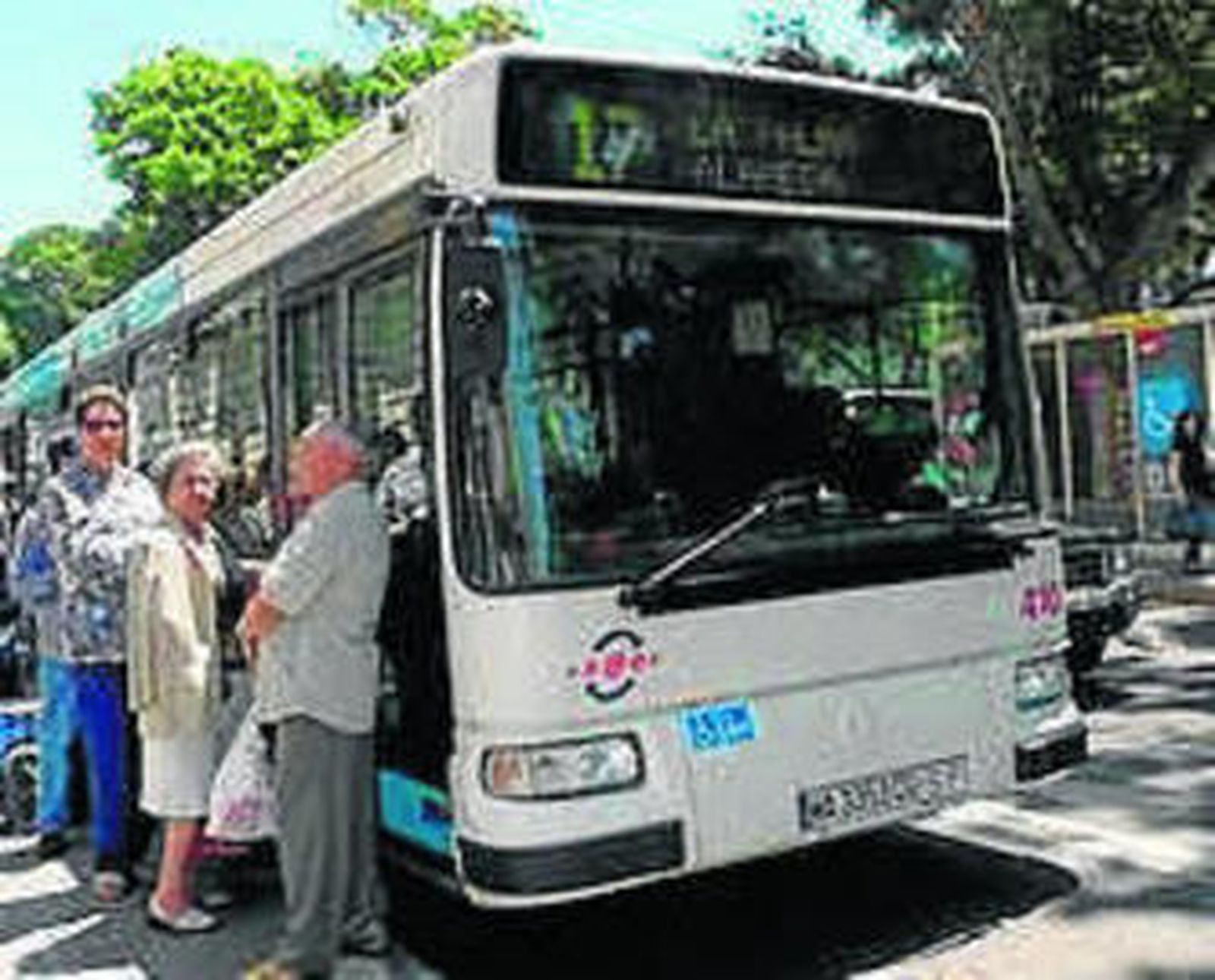 Son las 11:20 en la parada de la línea 17 en la Alameda. El autobús ya está listo para iniciar su trayecto. Hay 12 pasajeros a bordo, entre ellos un grupo de señoras mayores que viajan en la parte trasera, dispuestas a regresar a sus casas después de haber hecho la compra del día o de continuar la compra en otra parte. Tres de ellas lucen flores en el pelo. Ríen constantemente. Un hombre vestido con un jersey de lana a pesar del calor ocupa una plaza reservada a personas con discapacidad. Lleva una muleta en la mano izquierda. Otro hombre, que lleva una gorra blanca y una camisa roja a rayas, conversa vivamente con el chófer, un chico joven que se pone las gafas de sol cuando cierra la puertas del autobús. Éste se pone finalmente en marcha a las 11:22. Una de las mujeres de la parte trasera saca una blusa blanca que acaba de comprar de una bolsa de plástico. La saca a relucir orgullosa frente a sus compañeras: "¡Mirad! ¡Es una talla XXL!" La blusa empieza a ir de mano en mano. Otra de las mujeres la toma, la estira a lo ancho y dice mientras ríe: "¡Nove! ¡Pues sí que es grande, sí!" Los ocupantes hablan en voz muy alta. En el Pasillo de Santa Isabel suben dos personas, una mujer con gafas de sol y un hombre mayor con una gorra azul. En la primera parada de la Avenida de la Rosaleda suben otras dos mujeres. El hombre de la gorra blanca sigue hablando con el chófer, de pie junto a él. Debaten los inconvenientes de circular por Málaga con el coche y de las ventajas de los transportes públicos. Dos mujeres de la parte trasera discuten sobre los infartos que el marido de una de ellas ha sufrido desde enero. En la segunda parada de la Avenida de la Rosaleda, pasada ya la Comisaría, sube un hombre con el pelo cano, muy delgado, vestido con pantalones cortos amarillos y una camiseta negra. Va cargado de bolsas de la compra. Las deja en el suelo, busca unas monedas en un bolsillo y luego vuelve a coger las bolsas para desplazarlas hasta el asiento. Le cuesta mantener el equilibrio.