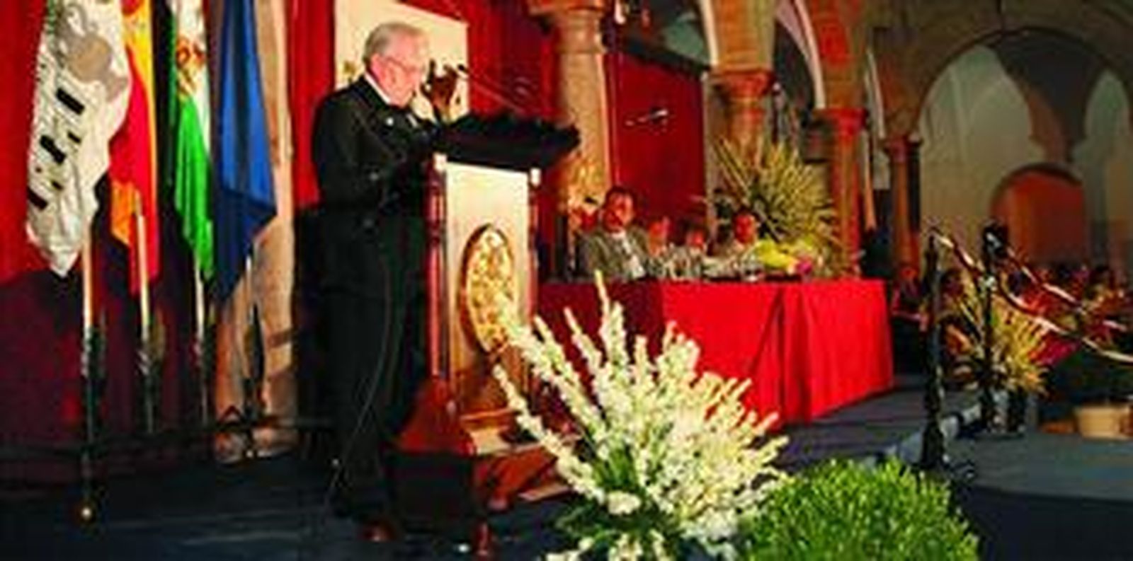 Con el patio de columnas del Ayuntamiento a rebosar, el antiguo regidor se dirigió emocionado a los asistentes con palabras de cariño para la ciudad que él rigió y que este año le había otorgado el honor de ser el pregonero de las fiestas, un nombramiento con el que, según González, "se llena un vacío que tenía en mi corazón y en mi memoria".