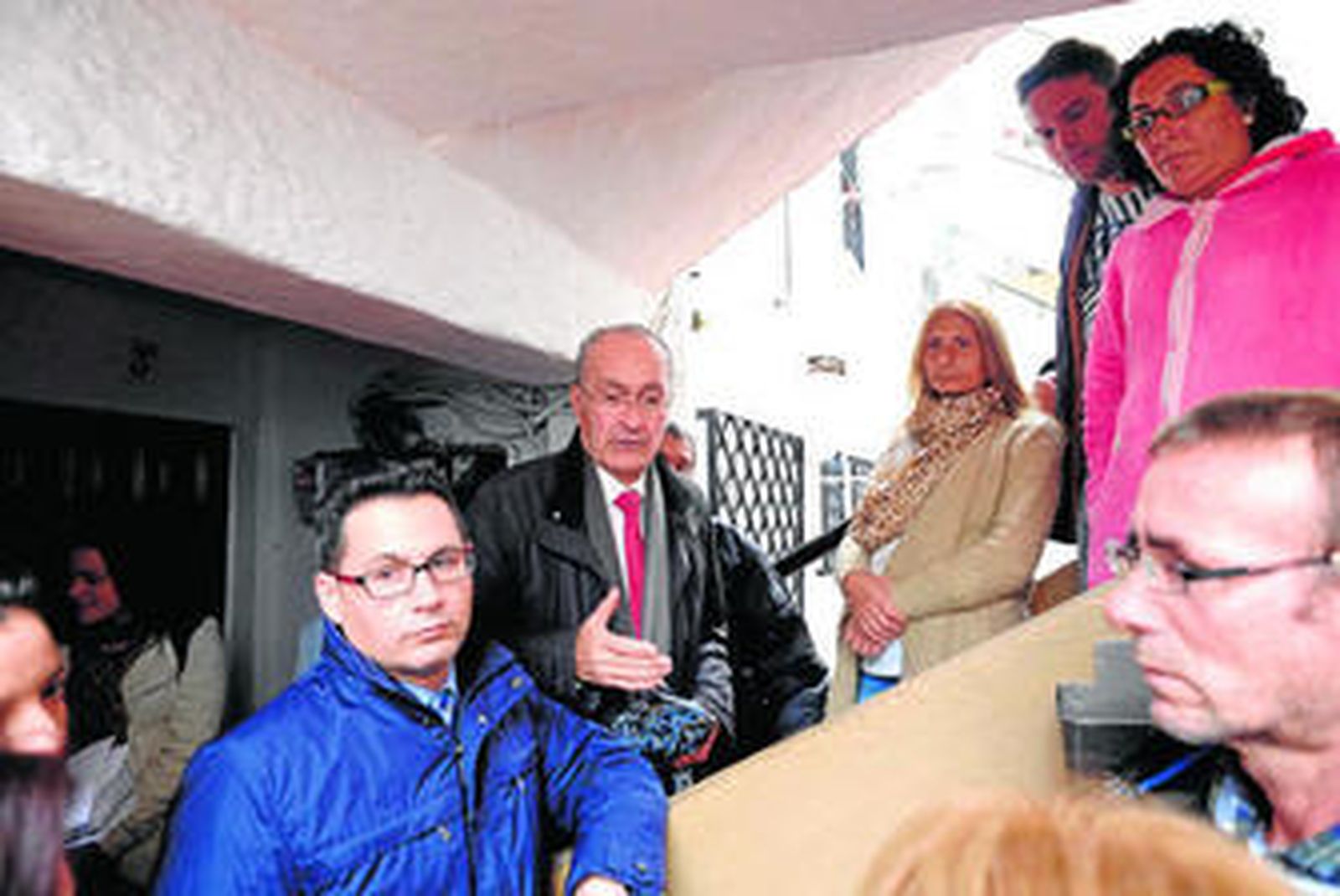 El alcalde de Málaga, Francisco de la Torre, acompañado por los concejales de Ordenación del Territorio y Vivienda y del distrito de Palma-Palmilla, Francisco Pomares y Mar Torres, respectivamente, visitaron ayer uno de los bloques que ha sido renovado gracias a esta iniciativa.