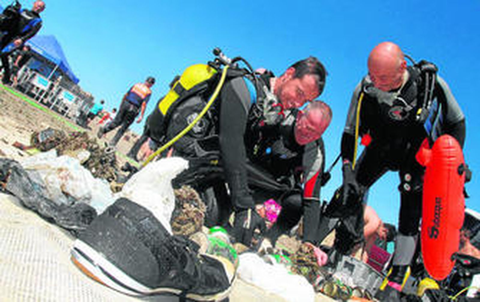 Submarinistas limpiaron ayer el fondo marino de la playa situada en el espigón de la Térmica