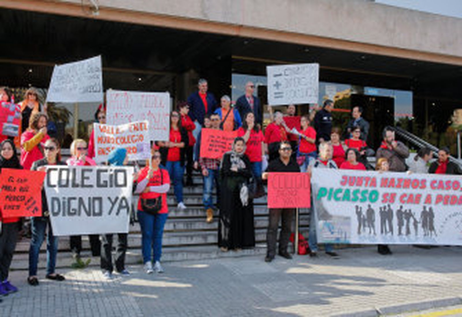 La lista de desperfectos es tan grande que un folio a doble cara se queda pequeño, según relata Susana Cortés, presidenta del AMPA del colegio público Pablo Ruiz Picasso de Fuengirola. Pero, por encima de grietas, azulejos caídos, estructuras metálicas oxidadas e instalación eléctrica obsoleta, lo que les parece más sangrante a los padres es que el muro del patio de Infantil lleve un año vallado por razones de seguridad y no se haya puesto ninguna solución por el momento. Por ello y para reivindicar un edificio digno en el que estudien sus 225 alumnos, esta mañana van a realizar una cacerolada de protesta en la Delegación de Educación.