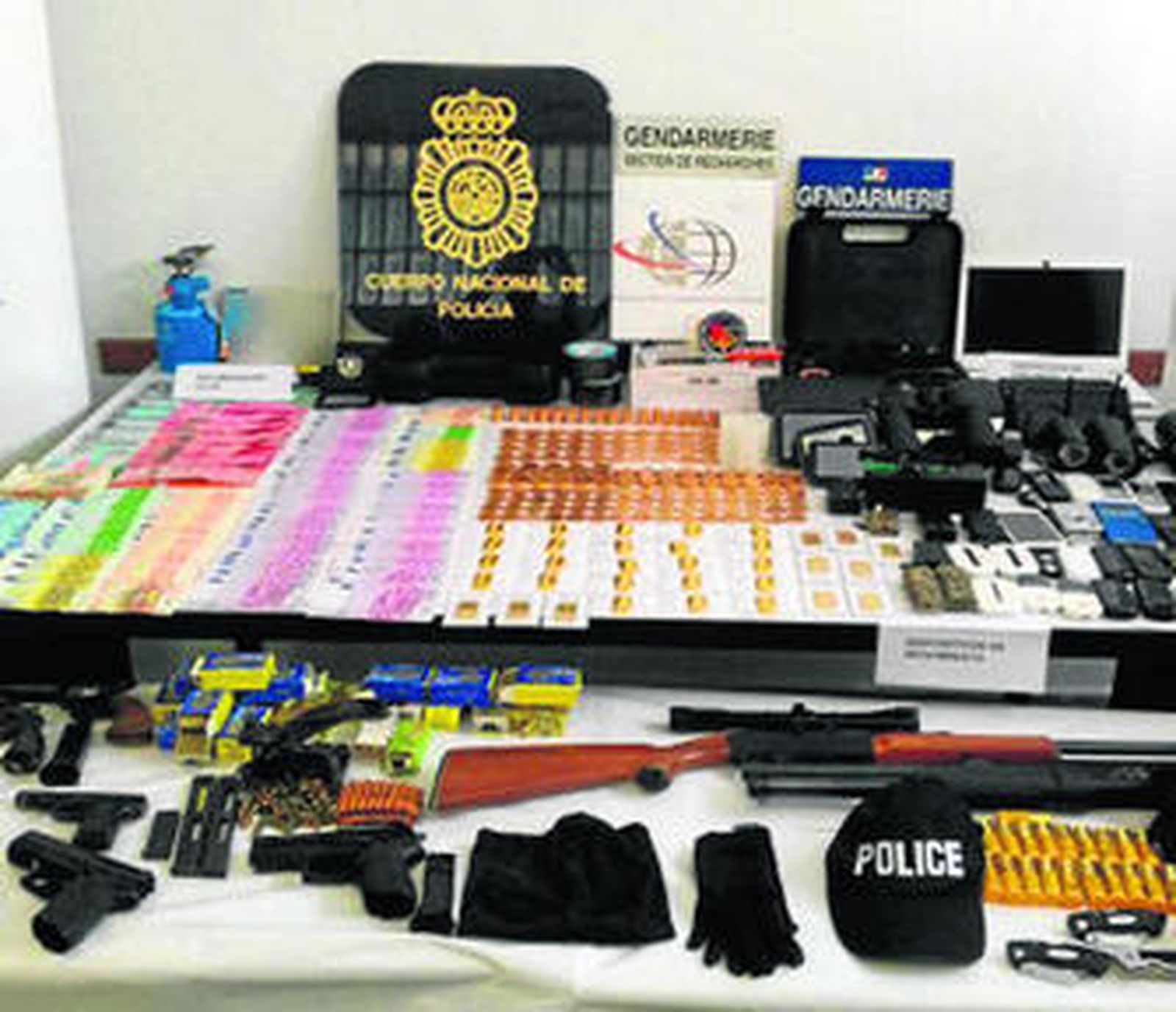 En el registro del inmueble se han incautado numerosas armas de fuego así como 56 lingotes de oro de distinto peso -valorados en 10.000 euros cada uno-, 440 monedas de oro de distinto valor, 90.000 euros, documentación e información de las cuentas de la víctima y propiedades que consiguieron por el secuestro. Además, distintos tipos de dispositivos de vigilancia y multitud de teléfonos, tarjetas de memoria, discos duros e impresoras y material tecnológico para cometer futuros atracos o secuestros.