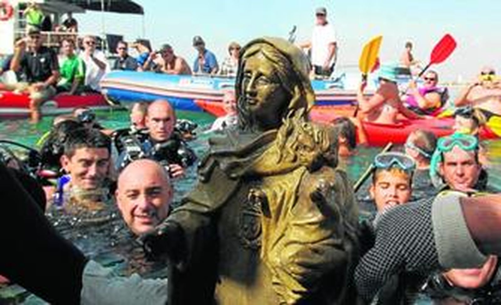 "Hemos bajado algunos de los compañeros y ahora la trasladamos a pie de playa", comentó ayer un miembro de la asociación, Ángel González. "Es un día para nosotros estupendo". Este año el número de submarinistas que ha bajado a recoger a la Virgen ha sido alrededor de 15.