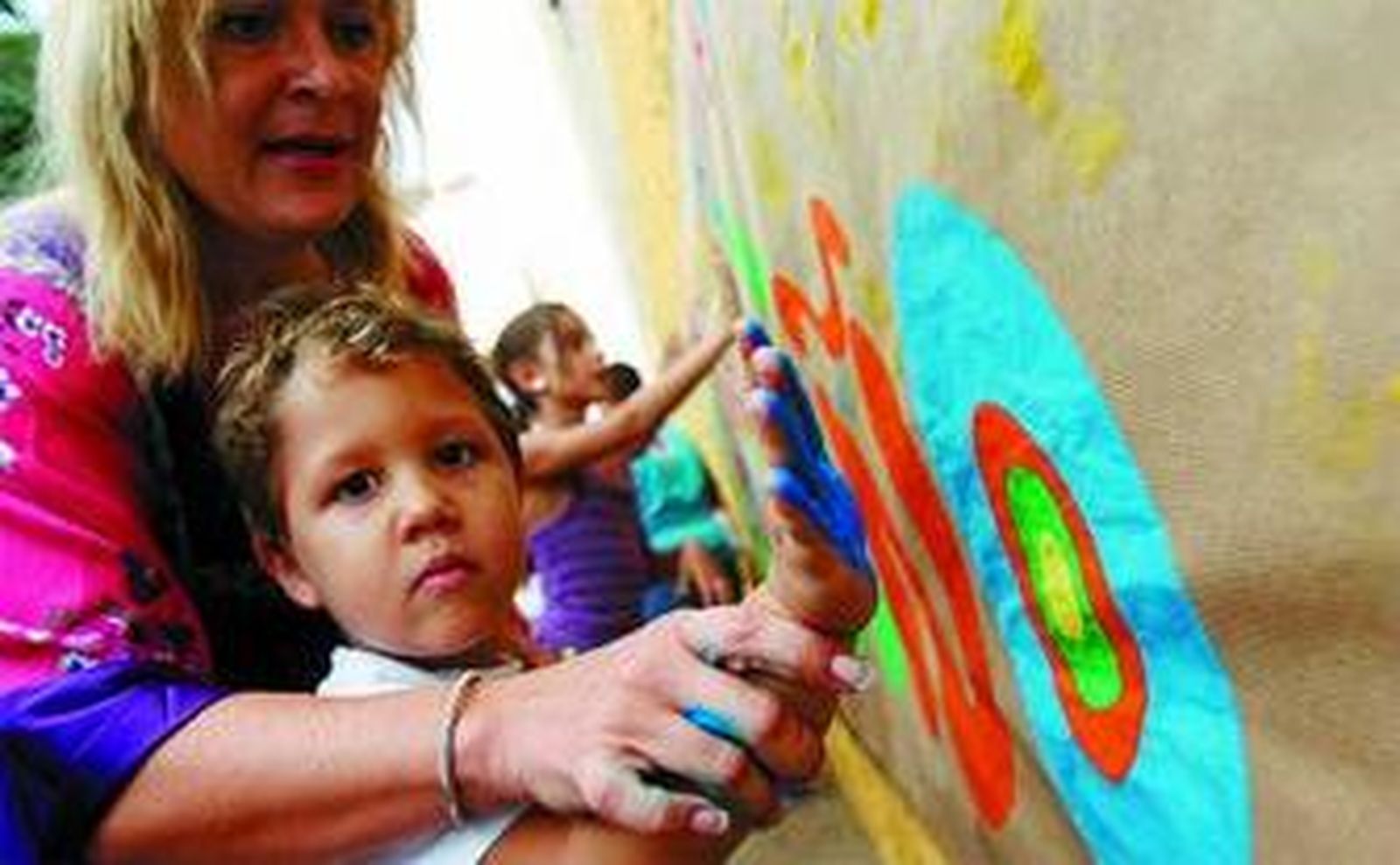 Los más pequeños de la barriada recibieron ilusionados material escolar gratuito, confeccionaron un mural y asistieron a una obra de títeres y guiñoles