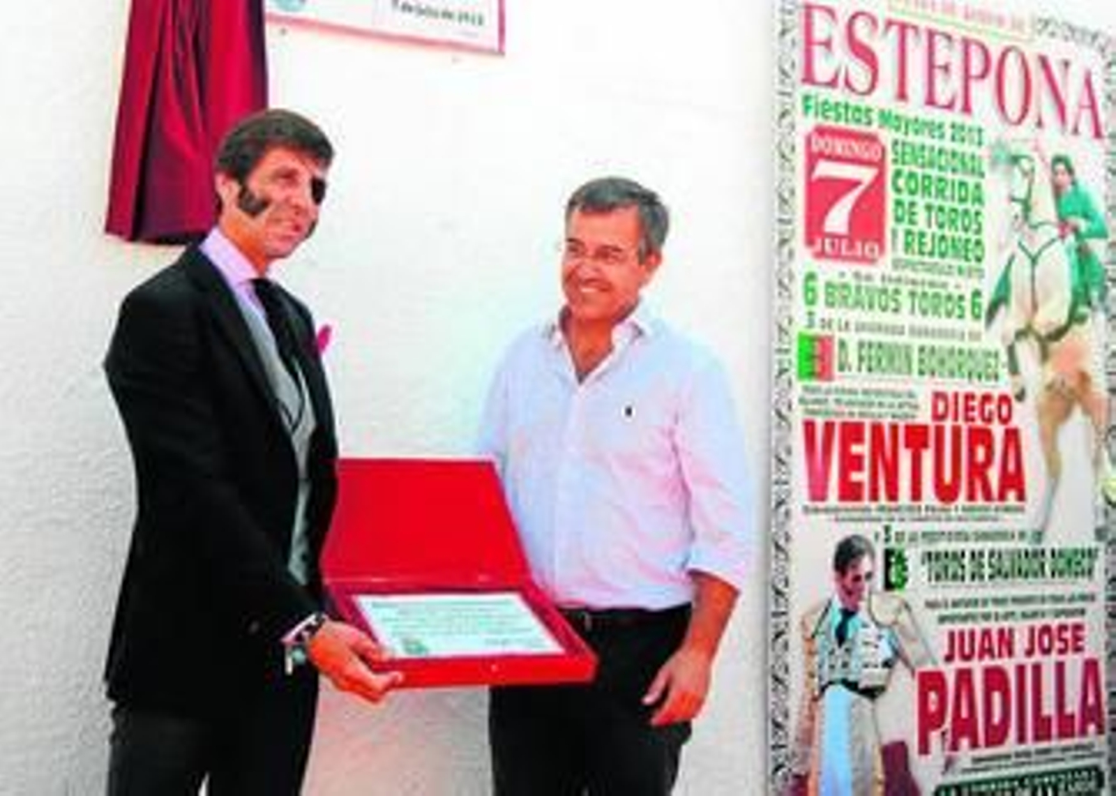 El alcalde de Estepona, José María García Urbano, entregó ayer una placa al torero Juan José Padilla, en reconocimiento a su "valentía" y "espíritu de superación". El regidor destacó la capacidad del diestro a la hora de enfrentarse a la recuperación de la cogida que sufrió en Zaragoza en octubre de 2011. García Urbano subrayó la implicación y entrega que el torero tuvo con la ciudad el año pasado, cuando salió por la puerta grande tras torear en la Feria y Fiestas de Estepona. Así, indicó que "la ciudad, con el acto de hoy [por ayer], le devuelve el cariño y le reconoce su esfuerzo profesional".