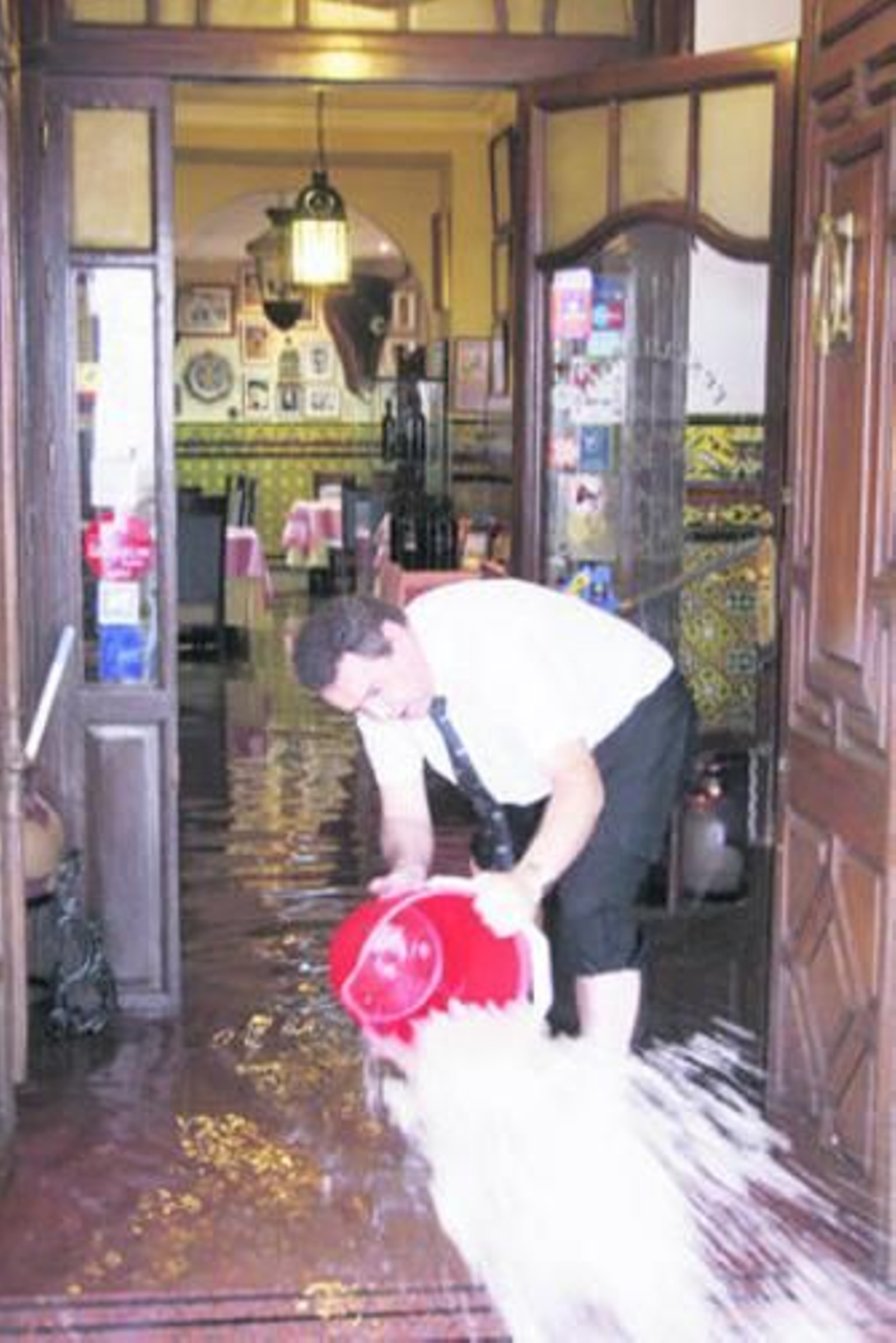 Mientras, en el interior, los clientes se resignaban ante lo ocurrido y se lo tomaban con cierta gracia. "Hemos terminado los postres y vamos a pagar y todo", indicaba uno de los clientes que quedó encerrado en el restaurante Pedro Romero, ubicado en la calle Virgen de la Paz, que llegó a tener casi medio metro de agua. Su propietario, resignado ante lo ocurrido, realizaba las últimas cuentas entre el agua que anegaba el salón y que le había dejado sin suministro eléctrico. "Esto es un desastre", afirmaba Tomás Mayo.