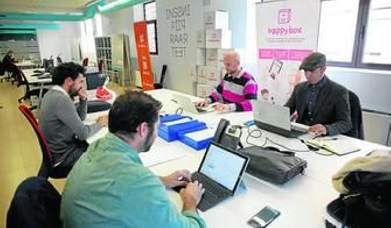 Happy Box está formado por seis socios -Juan Pineda, Chris Orejuela, José Ferrer, Jesús Pedrero, Alvaro Villacorta y Guillermo Meyer- aunque Pineda y Orejuela fueron los precursores. Trabajaban juntos en una compañía española de marketing on line y vieron que había una oportunidad de negocio en el sector del transporte de última milla. "Vimos que a veces tardan muchos días e incluso semanas en enviarte un paquete o que te dicen una franja horaria muy amplia que te obliga a estar todo el día en la casa esperando, por lo que poder recibir un paquete en una hora era una oportunidad", comenta Orejuela. Necesitaban un socio tecnológico y se sumó José Ferrer, propietario de la firma Solbyte, especializada en aplicaciones y en gestión de flota. Posteriormente entraron el resto de socios, cada uno especializado en un segmento. Esa experiencia les está permitiendo crecer sobre seguro, con el asesoramiento además de Telefónica a través de su implantación en el centro La Farola del programa Open Future. Empezaron invirtiendo 50.000 euros de recursos propios y ahora esperan lograr una financiación de entre 70.000 y 120.000 euros para impulsar su crecimiento nacional, alcanzando el punto de equilibrio tras el verano.