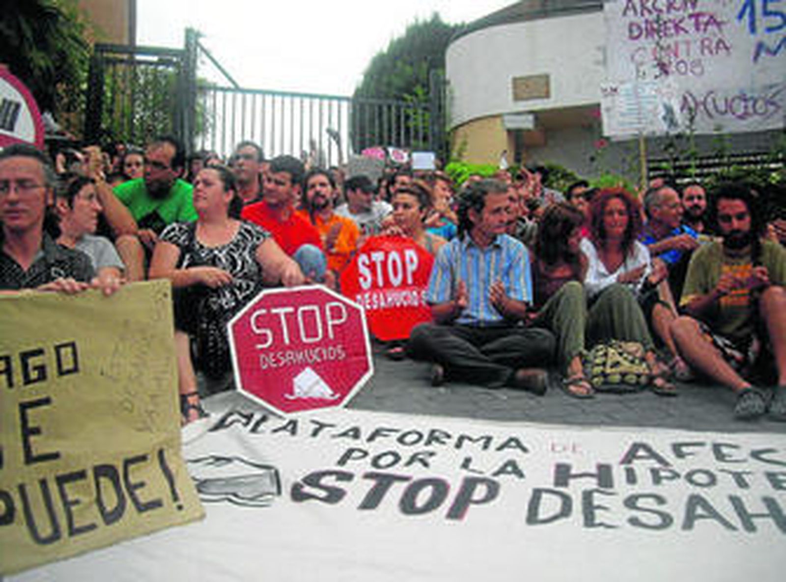 La Plataforma de Afectados por la Hipoteca y el 15-M paralizan un desahucio en Rincón que queda suspendido hasta principios de septiembre · Más de un centenar de personas en la acción no violenta