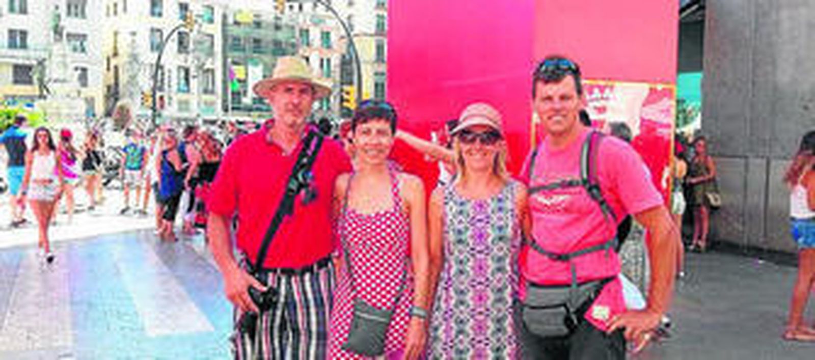 Las familias Van Pays y De Cock, originales de Flandes (Bélgica), no sabían qué era la Feria, eligieron Málaga para pasar dos semanas de vacaciones y, sin comerlo ni beberlo, han terminado embelesados con el ambiente festivo del centro. Quizá bebiéndolo, sí, "el vino dulce que se bebe por las calles es fantástico", afirma Tim mientras sostiene un vasito de Cartojal.