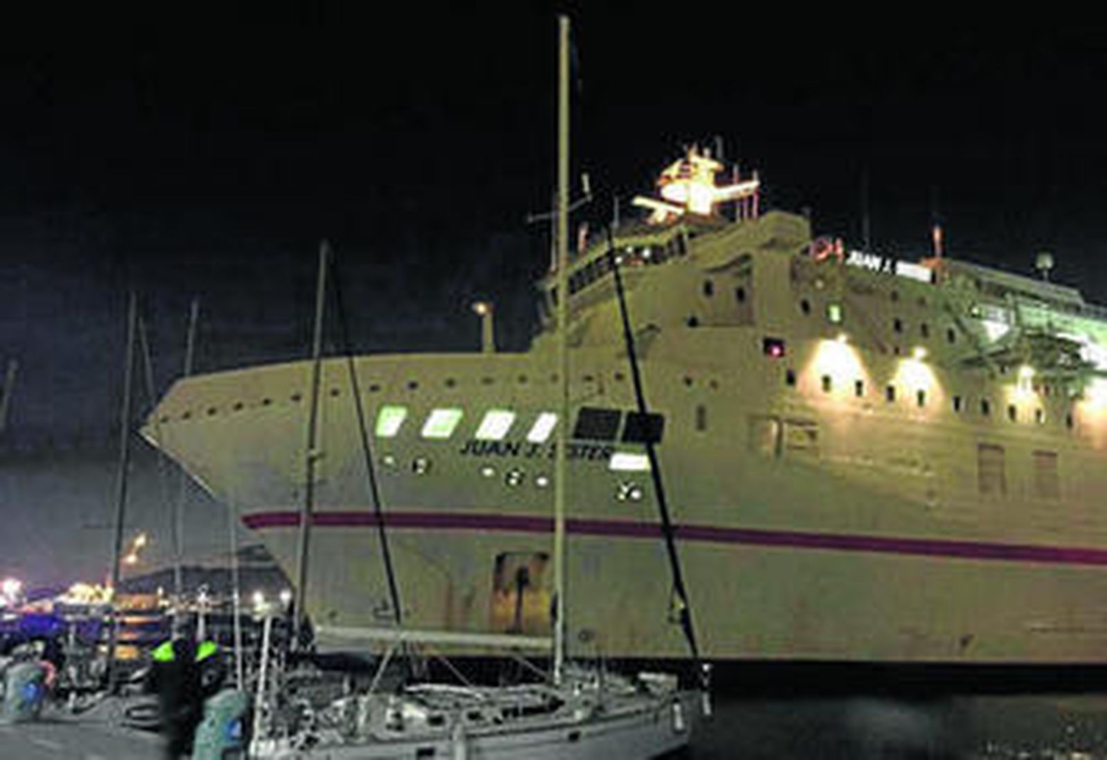 Minutos después de las 19:45, el Juan J. Sister se avalanzaba contra varios veleros amarrados en el Muelle Uno mientras realizaba su maniobra de atraque. Posicionado en la mediación de la dársena de Guadiaro, las fuertes rachas de viento que alcanzaron hasta 20 nudos o un posible fallo momentáneo de su máquina se barajan como las dos principales causas del accidente. Con un velero desarbolado y semihundido y varios yates más afectados, el impacto lo producía el bulbo del ferry. En los momentos previos al accidente, desde el Melillero se pedío auxilio de los remolcadores que no pudieron impedir el choque al no estar junto al buque en el momento del incidente (habitualmente ninguno de los dos ferries que operan en esta línea maniobran con la ayuda del servicio de remolques) .