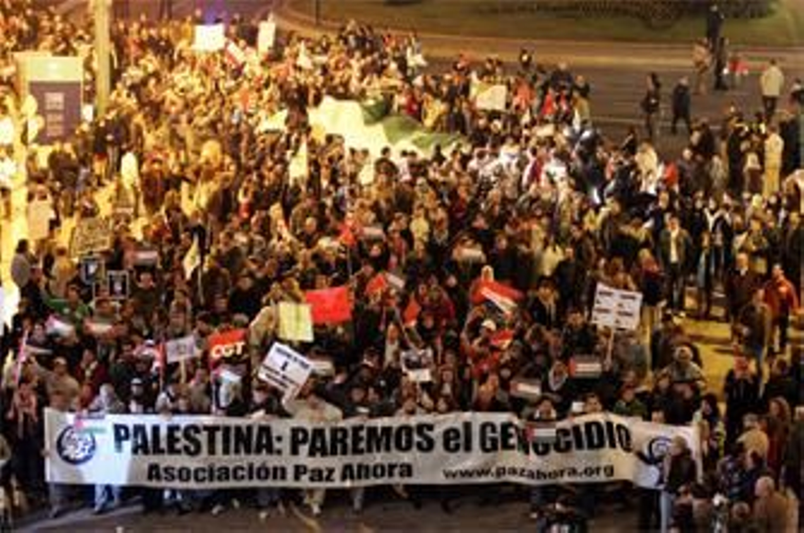 Un rotundo grito por la paz se ha hecho hueco está tarde en las calles de Málaga. Con la Plaza de la Merced como punto de partida, los malagueños se han dado cita para mostrar su solidaridad con el pueblo palestino ante la terrible ola de violencia de Israel. La manifestación, la cuarta desde que comenzaron los bombardeos, ha sido convocada por partidos políticos -PSOE e IU-, sindicatos -CCOO, UGT y CGT, y organizaciones como Aseco y Al Quds. La Policía Local cifra en 3.500 los asistentes, mientras la organización de la convocatoria estima en 11.000 las personas que se han sumado a la protesta.