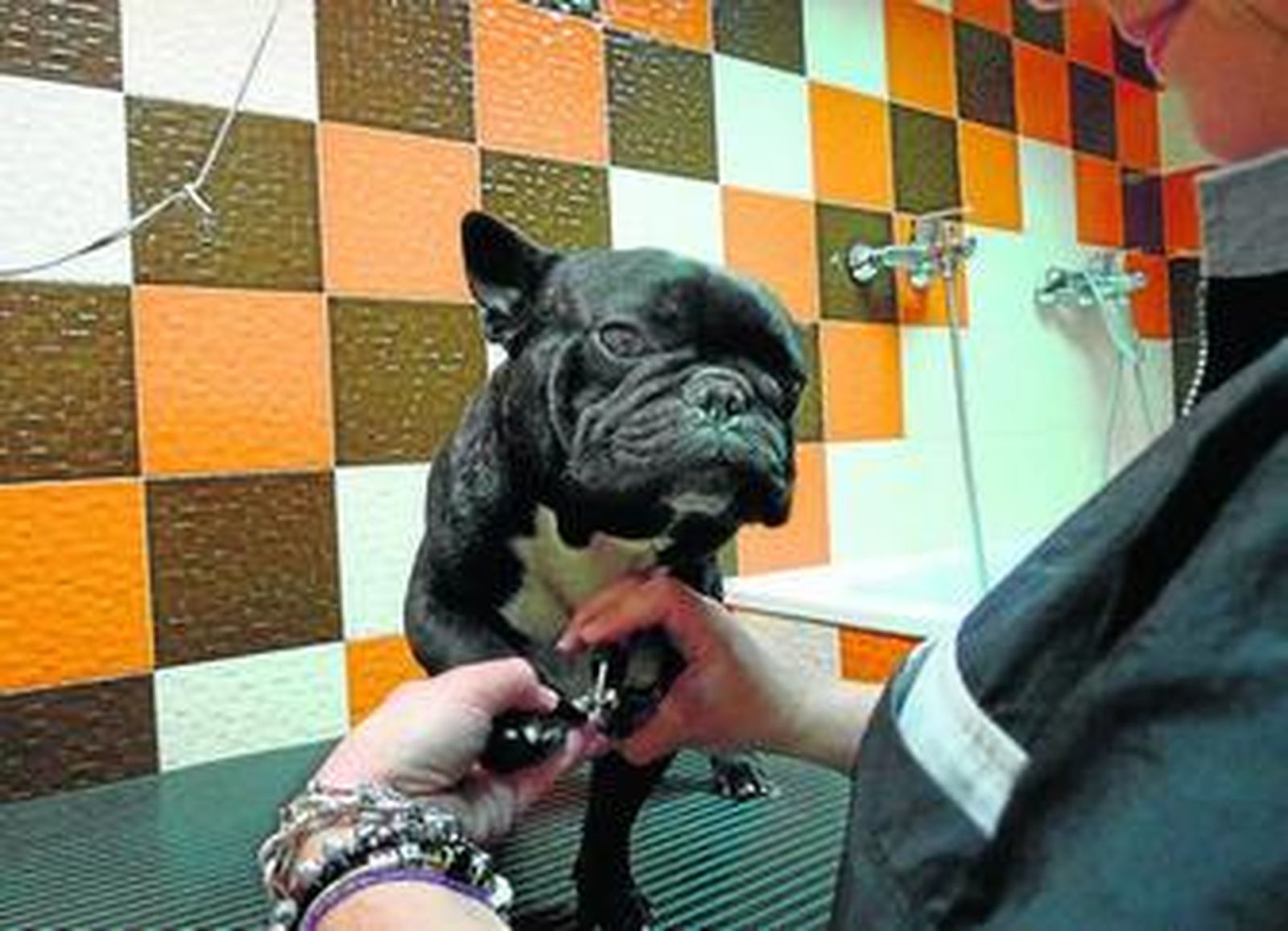 El aseo es una de las labores más importantes. Cristina es quien lava y pela a estos particulares clientes. Como peluquera canina lleva a cabo todo tipo de cortes: "Hay perros, como los caniches, que requieren de cortes más esmerados, por ejemplo con pompones en las patas", explica Cristina, quien advierte que es conveniente bañarlos una vez al mes como máximo, pues lavarlos en exceso no es bueno para el animal y puede incluso provocarles dermatitis. Existen champús para pelo corto o largo, o especiales para aquellos que tengan problemas en la piel. Por ejemplo los champús MD10, una marca poco conocida pero muy utilizada por los peluqueros, dispone de champús específicos para cada raza. El mal olor que a veces desprenden se debe a que al lavarlos en exceso se les quita una grasa natural que ellos mismos producen, por lo que es conveniente aportársela con una mascarilla o bálsamo especial tras el baño. No obstante, hay una amplia gama de perfumes caninos con olores frutales, de vainilla o fresa entre otros. Lo que no se debe olvidar nunca es cepillarlos cada día para evitar que atraigan bichitos indeseados.