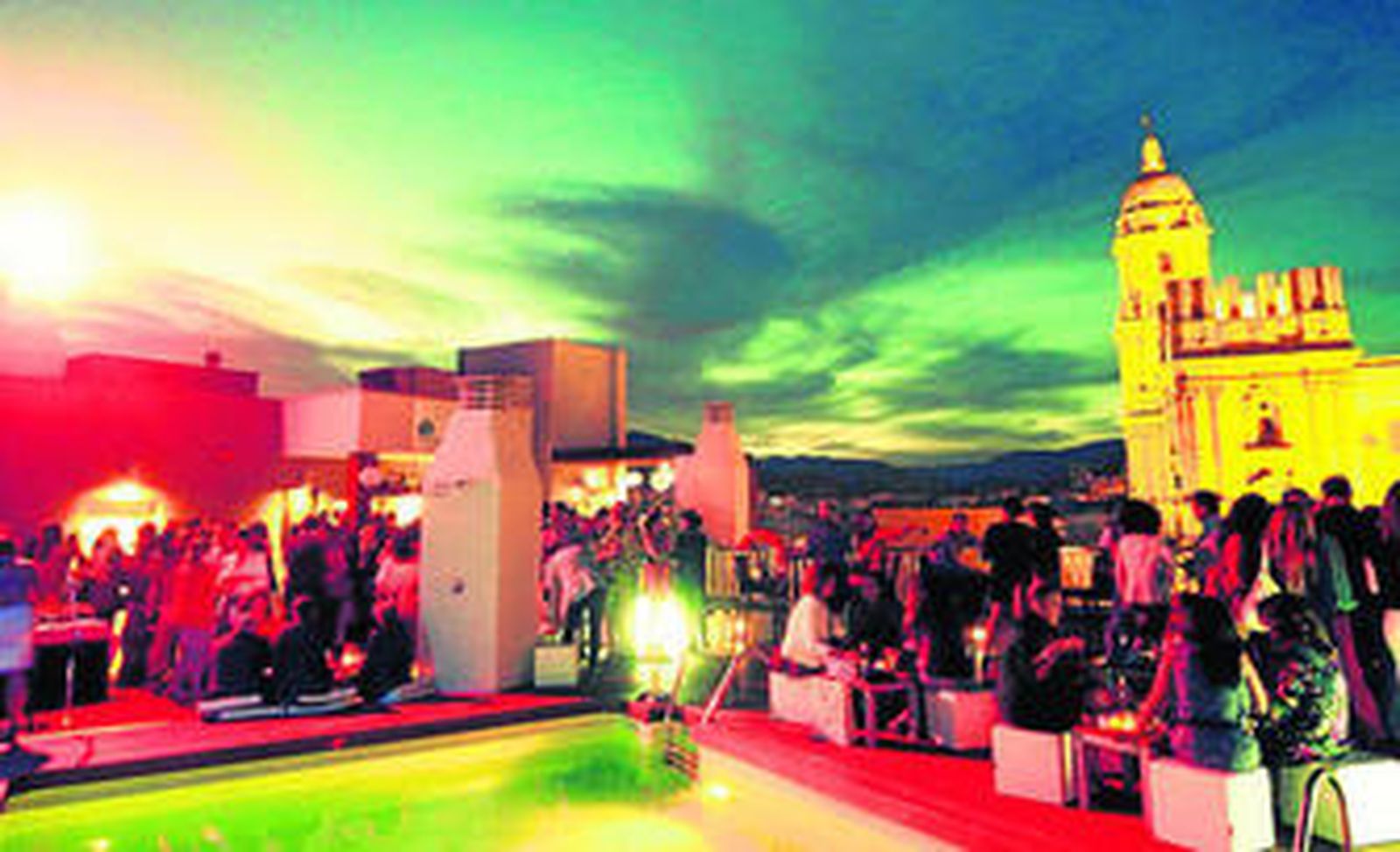 Situada en la octava planta, la terraza del hotel Molina Lario cierra hoy, a partir de las 21:00, el ciclo de noches de música en el patio de su restaurante, El Café de Bolsa, donde cada jueves se puede disfrutar de una caña junto a una tapa por 2 euros. La artista Nuria Martín, en esta ocasión, amenizará las propuestas culinarias con el mejor flamenco. En la llamada piscina lounge, tendrá lugar una fiesta flor zen, con composiciones florales de influencia oriental, que se acompañarán de un cuarteto de música clásica. El próximo día 9, se celebrará el desfile de moda vintage, mientras que la noche del día 10 podrán contemplarse los tradicionales fuegos. Para una velada idílica, el restaurante del hotel dispondrá de una cena que incluirá también una copa en la piscina, con un coste de 70 euros.