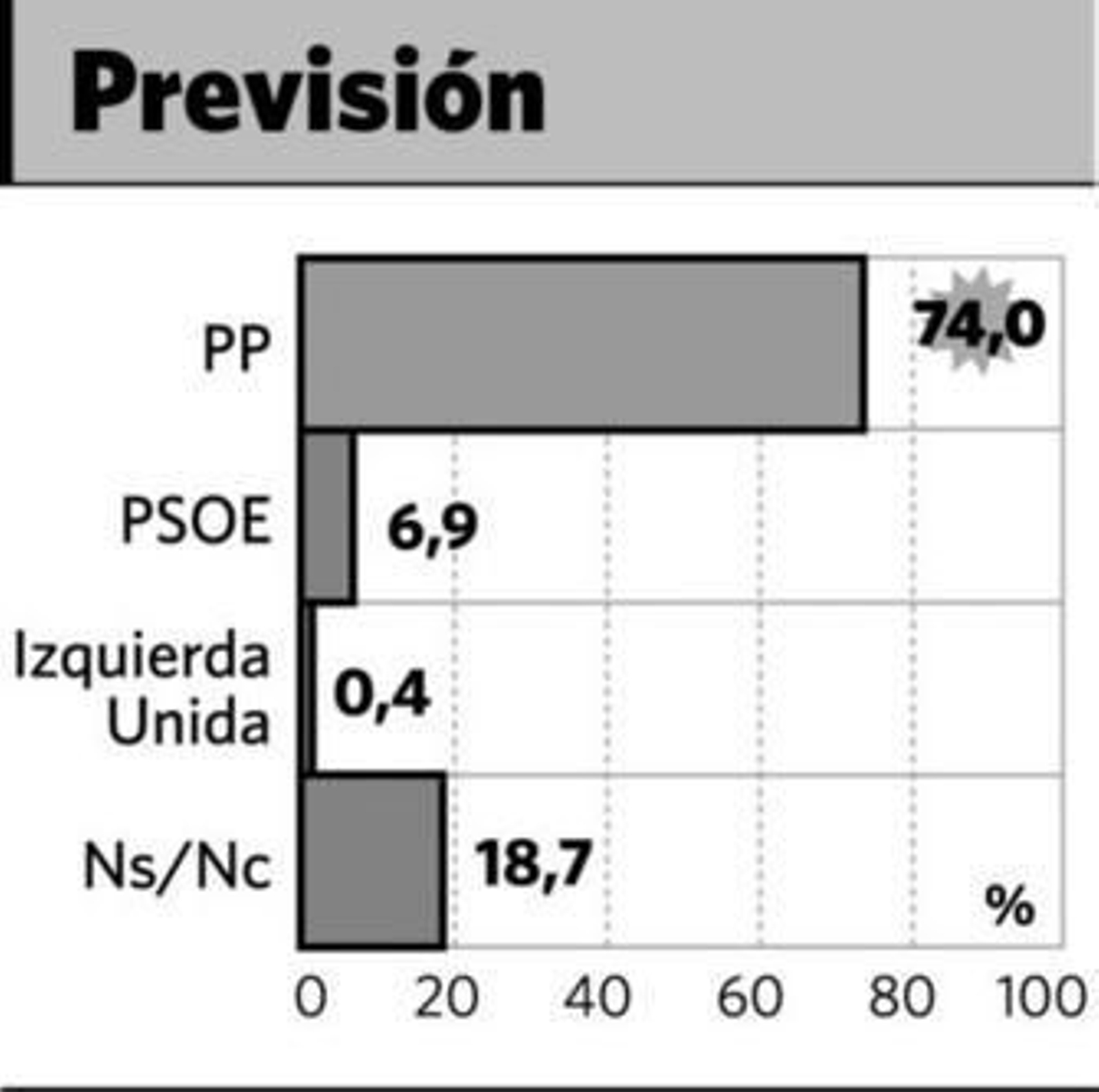 En cuanto a la participación, el 73,6% de los encuestados dice que votarán con total seguridad y un 7,1 no sabe o cree que no. Los votantes del PP son los más convencidos de acudir a la convocatoria, un 87% frente al 83% de los del PSOE. En cuanto al voto directo, el que no tiene en cuenta la simpatía u otros factores de corrección, el PP consigue un 23,1% y el PSOE un 11,4 %. Eso sí, un 32,5 de los consultados dicen que aún no se han decantado por una opción concreta.