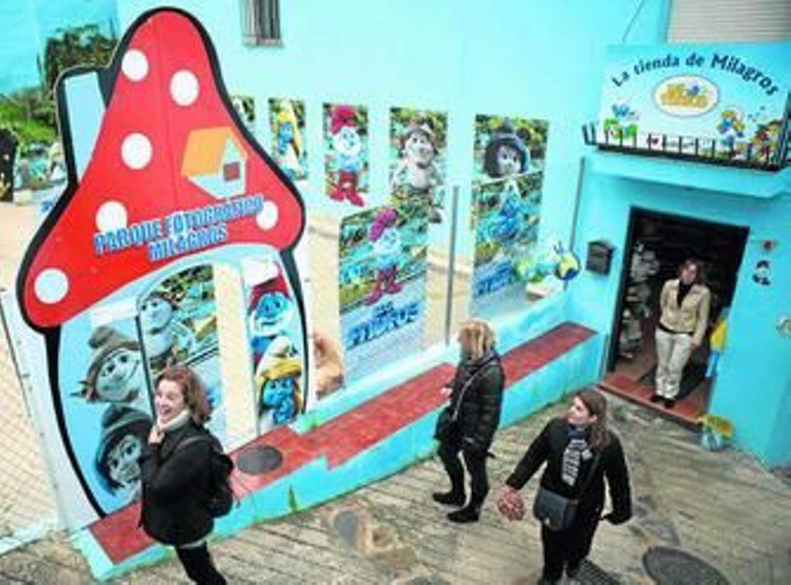 Otro caso en el que también personas desempleadas han encontrado un trabajo gracias a estos pequeños personajes es de La Tienda de Milagros. Allí, además de su propietaria, su hijo y su pareja, ambos estaban parados, ahora tienen un empleo. Milagros se siente especialmente satisfecha de haber podido dar trabajo a sus dos empleados. También ha encontrado un complemento a sus ingresos Alfredo Oballe, que atiende con pasión el punto de información turística que existe a la entrada del municipio. Él también reconoce que tiene mucho que agradecer a Los Pitufos.