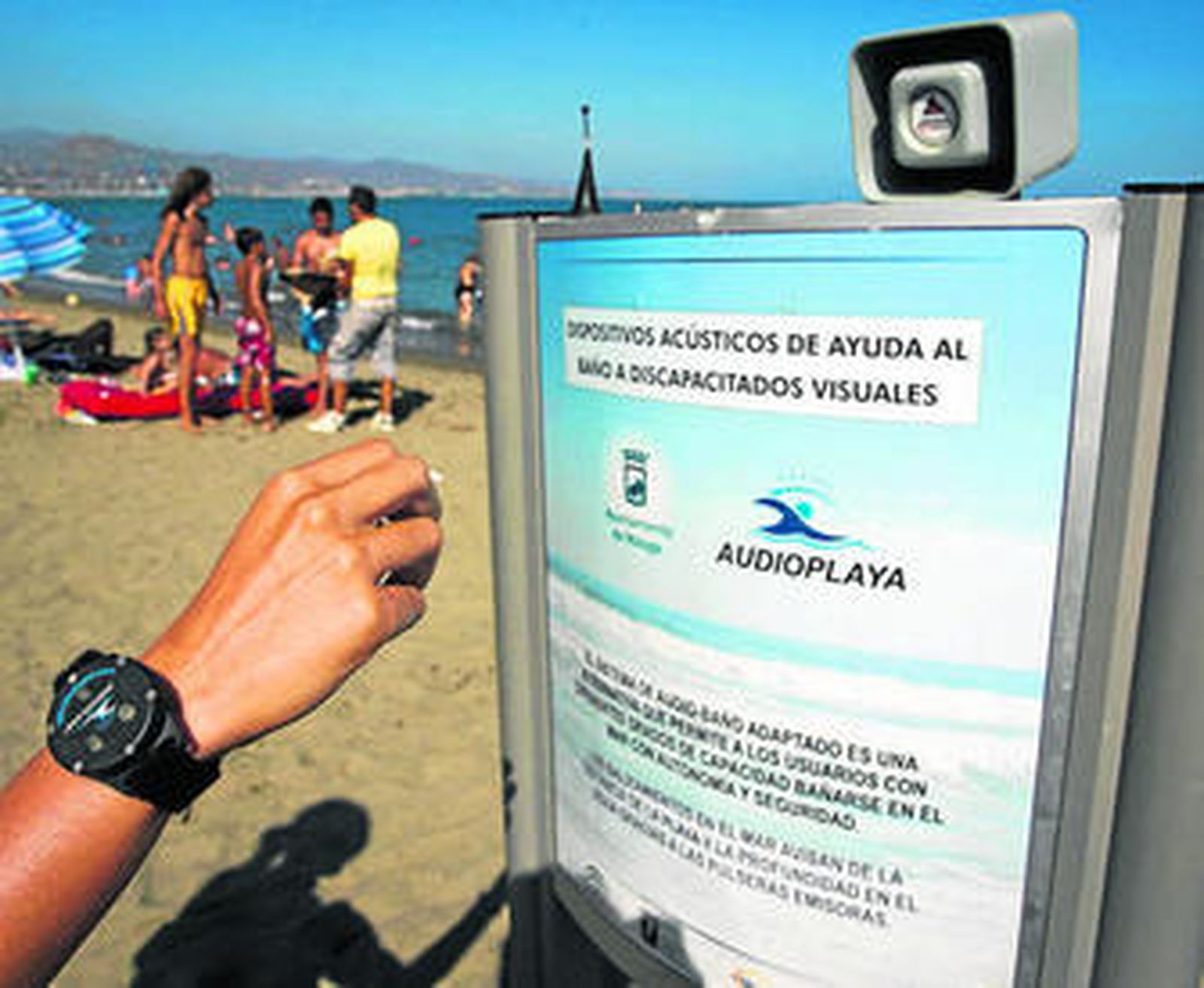 Disfrutar de la playa ya no supone ningún problema para los invidentes. Esto es posible gracias a un sistema especial de coordinación tecnológico, único en Andalucía, que ya funciona en dos playas de Málaga. Son las de El Dedo y La Misericordia las que cuentan con este dispositivo que, compuesto por un reloj pulsera con un sistema de audio, ayuda al bañista -mediante unas balizas de información que se encuentran en el mar- a saber en todo momento a cuánta profundidad se encuentra.