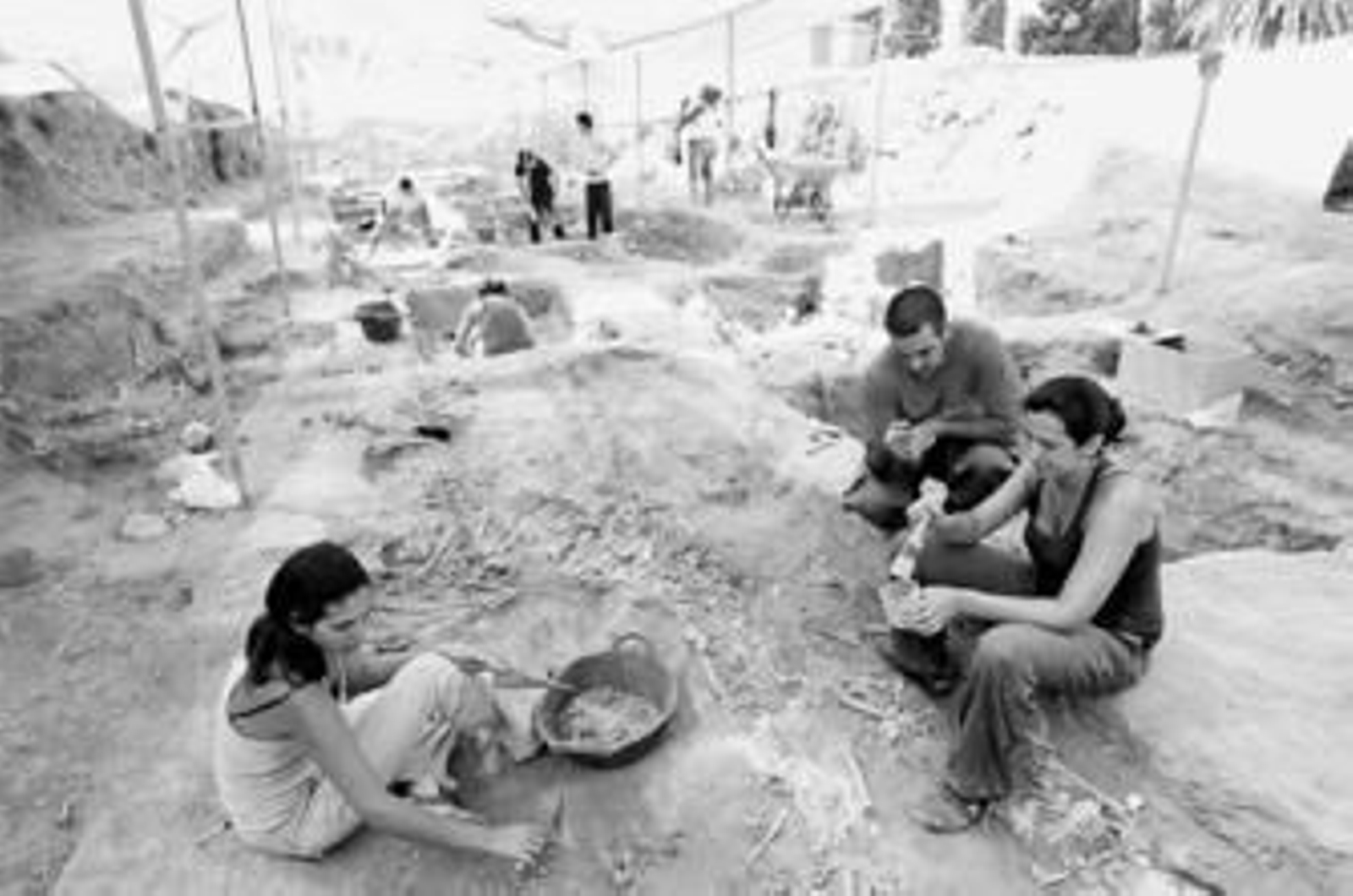 Con punzón en mano, un pequeño cepillo y un cuchillo, los trabajadores especializados y jóvenes estudiantes llevan a cabo las excavaciones del antiguo cementerio de San Rafael, para recuperar los restos de personas fusiladas y enterradas en fosas comunes durante la Guerra Civil española.