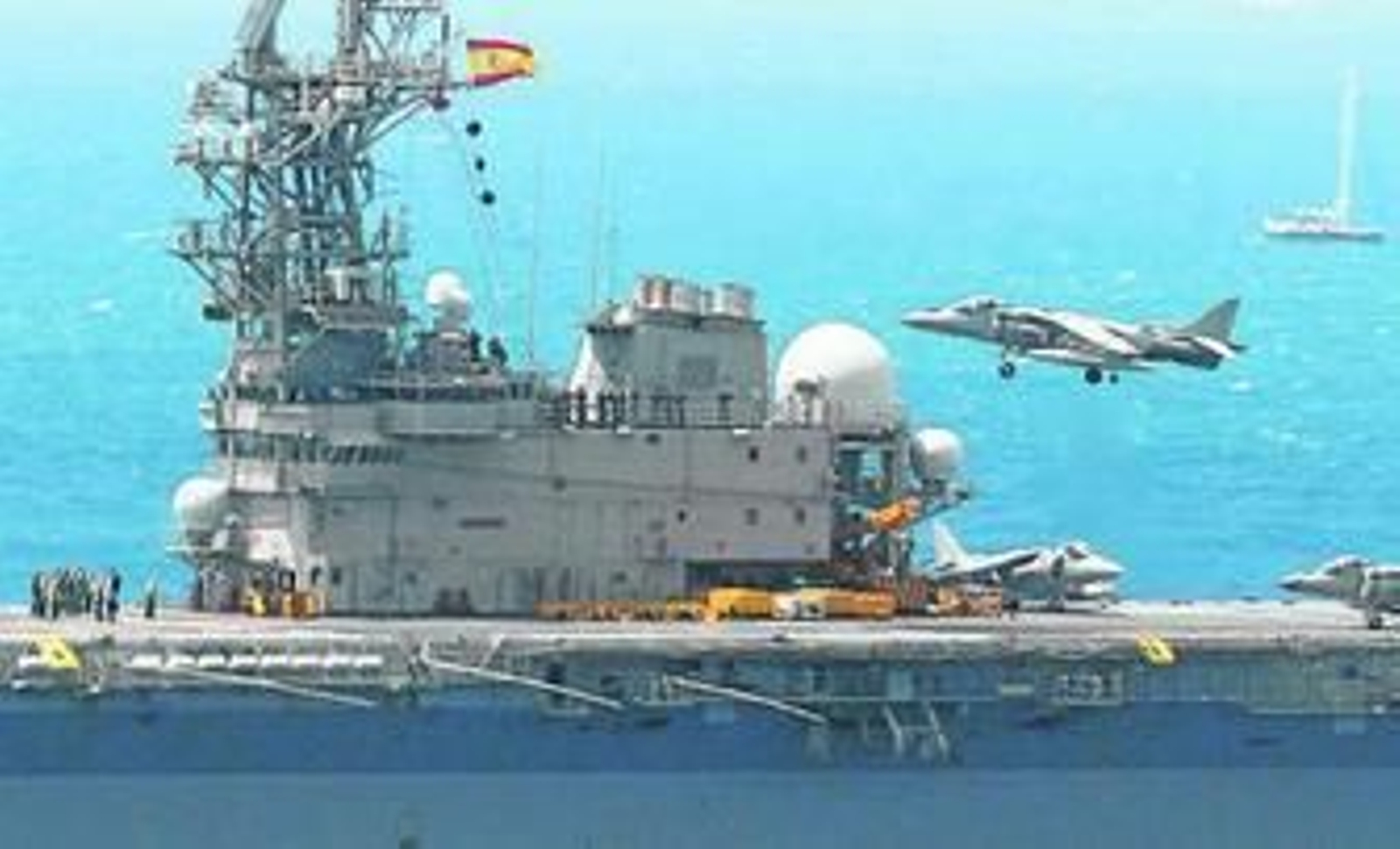 Unos 1.100 militares intervinieron ayer en una demostración de los ejércitos de Tierra y Aire y de la Armada · El portaviones Príncipe de Asturias, el cazaminas Segura y la fragata Álvaro Bazán participaron en la exhibición