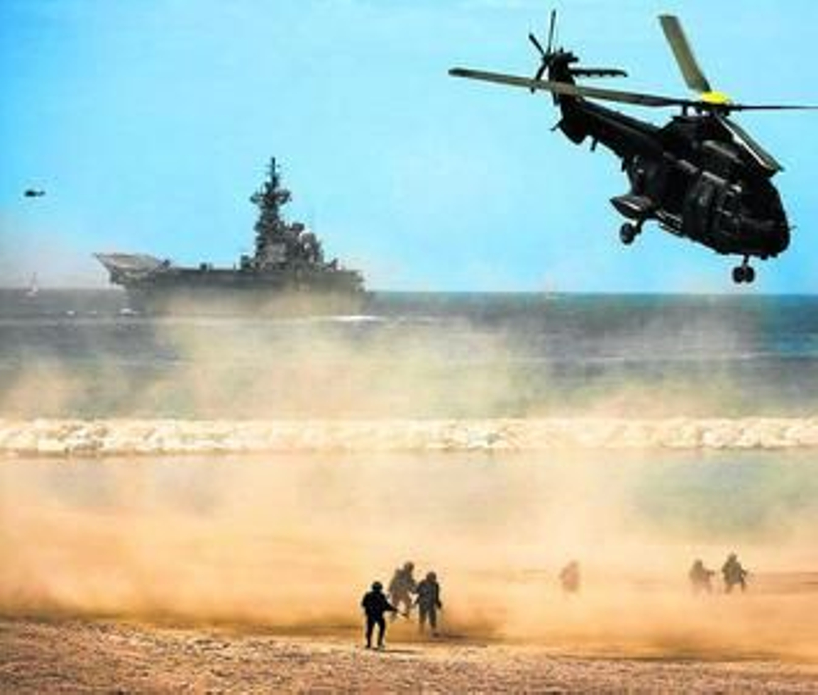 Ayer, al final de la operación, los vehículos aéreos que participaron en el simulacro desfilaron ante el público. Entre ellos, los aviones Harrier, cuya particularidad es el despegue y aterrizaje vertical. Para demostrar de la capacidad de estos aparatos estuvieron durante unos minutos suspendidos en el aire a pocos metros de la arena de La Malagueta. Después, volvieron al portaviones Príncipe de Asturias que los esperaba en la bahía. El espectáculo se había acabado. La playa volvía a ser la de siempre.