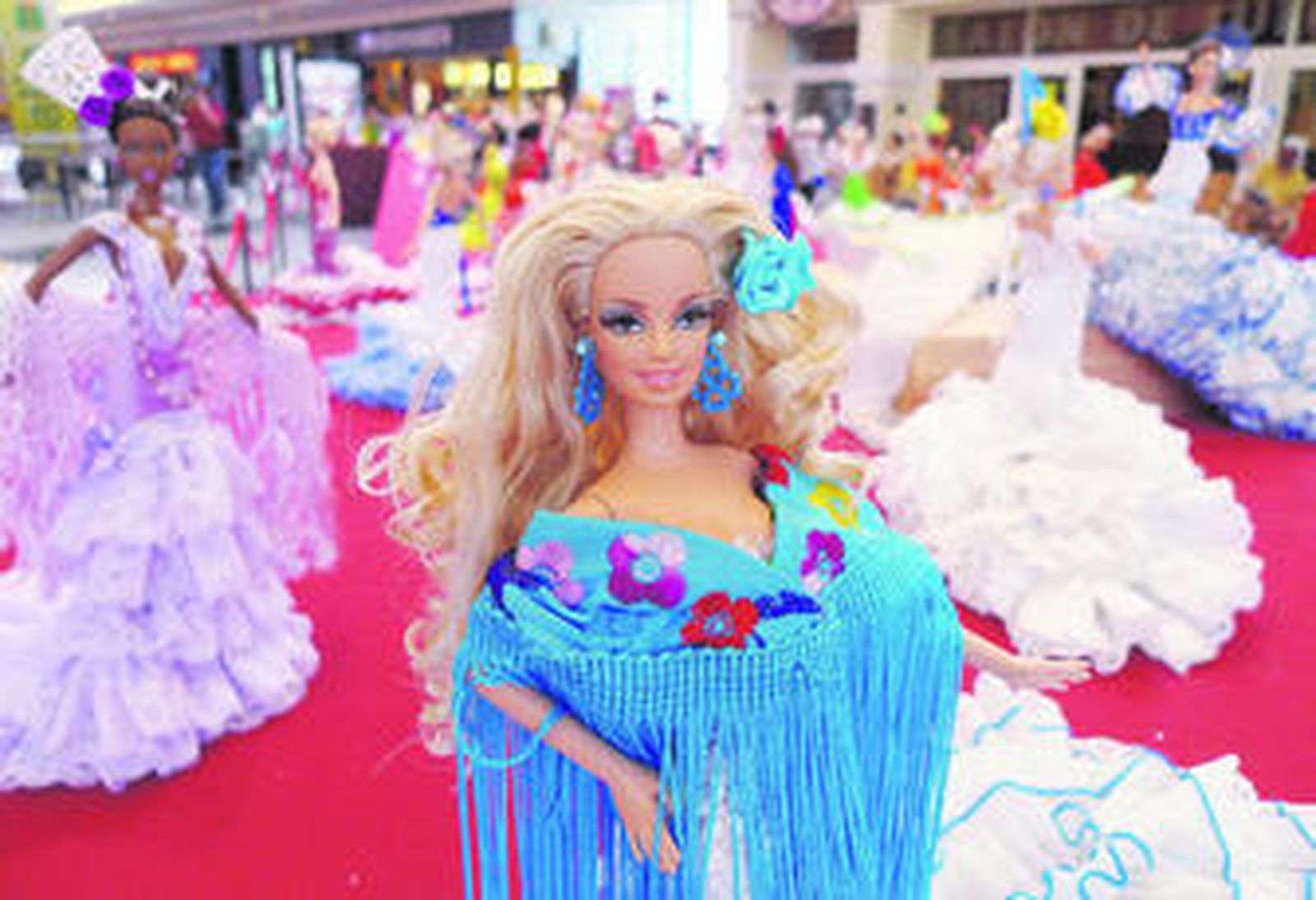Cerca de doscientas muñecas Barbie vestidas de flamenca se exponen en la segunda planta del Centro Comercial Vialia